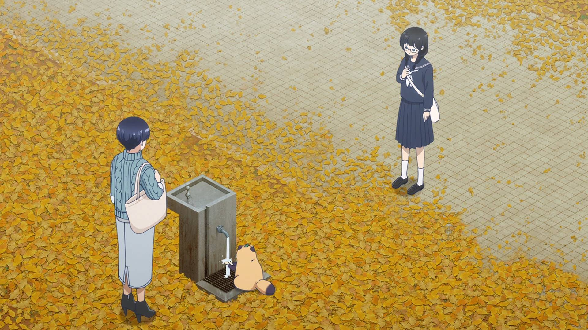 第五集讲的内容很碎,来了个仰慕藤的漫画家想让藤写一篇小说作为漫画原作,但这事只是开了个头。散步的时候碰到了两个学生,在狗是不是狗的问题上拉扯了几个回合。后半段送苹果+赏月两小段剧情,ed之后还有一分钟的摇沙锤的孩子。不知道是不是原作这部分情节不好分割成整集所以调换了下剧情顺序或者新增了一些原创剧情,也不知道漫画家、两个学生、沙锤娃会不会在之后的剧情再出现,不过也不用想那么多就是了。