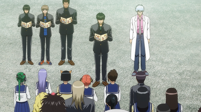 前面各位老师登场那一话(就是在学校里抓三个强盗那一话)中其实已经有提到要修学旅行了,于是,在那之后又过了几话,终于是来到了修学旅行篇,然后一如既往的是要大家念注意事项的土方,只不过这一次是被阿银强行解散了233