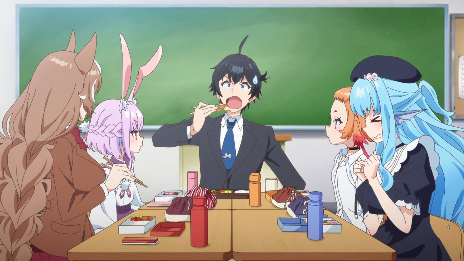 而且要考虑这个的话,最左边棕褐色的是狼娘,她右边粉色的兔娘,不也得被吃了嘛(被吃了的和吃了的都不会出现在高级班了)(?)。