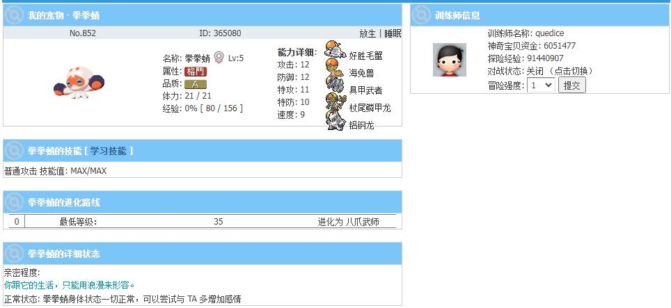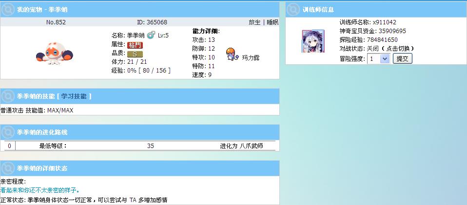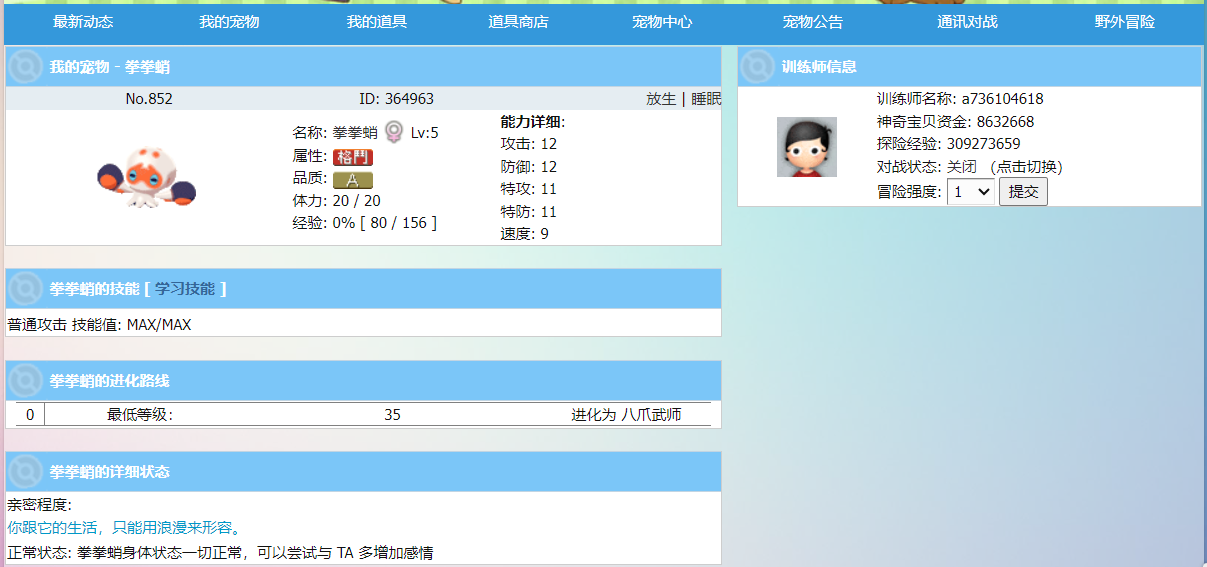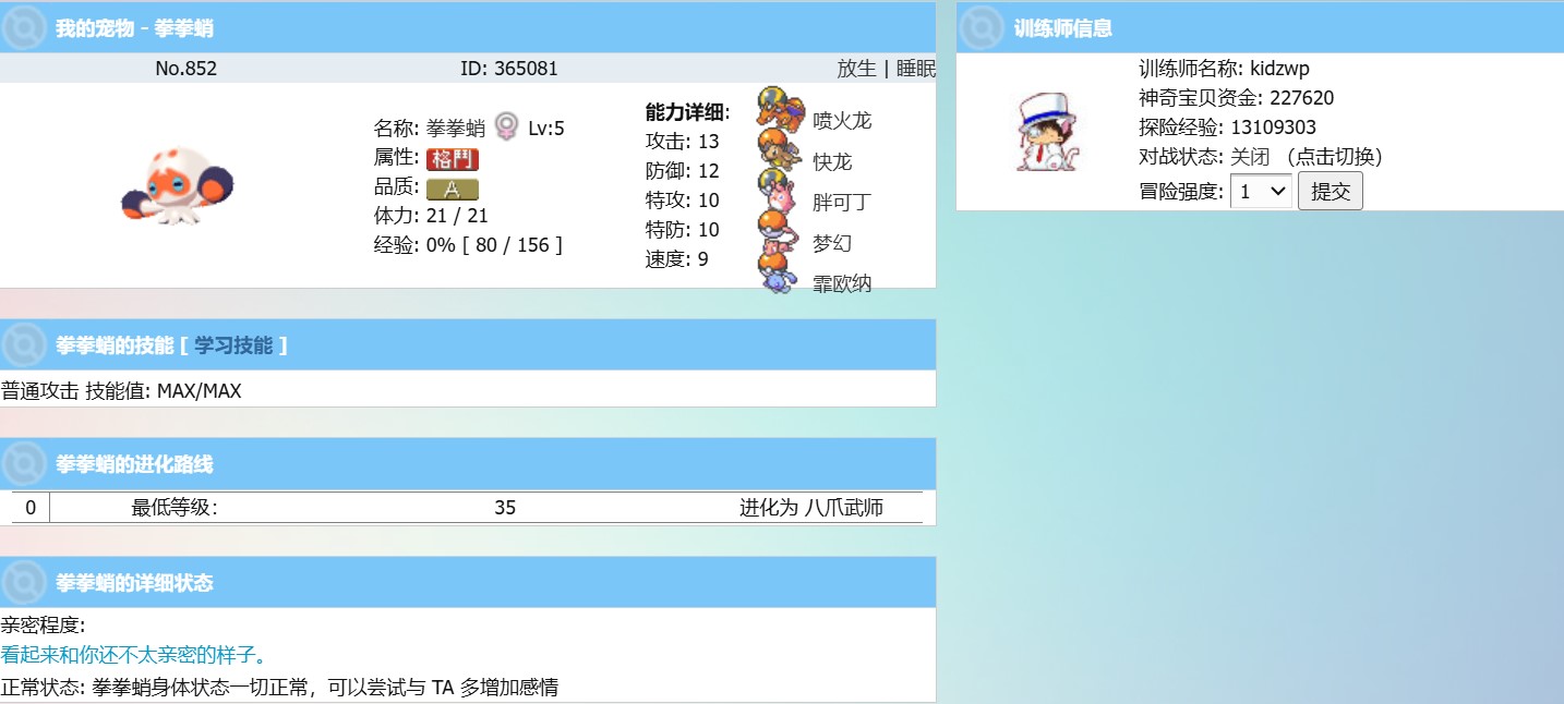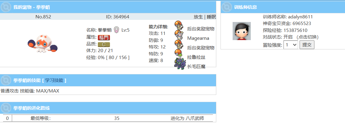 11. 组别(进化型序号)及宠物名:(000#—000#)组:宠物1-宠物2
