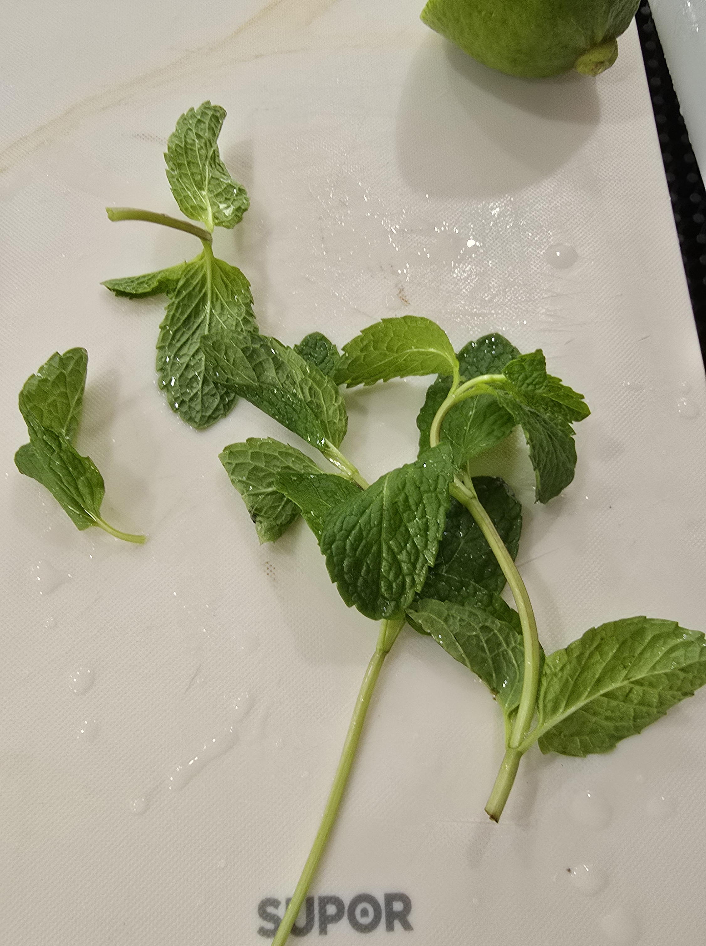 完成之后弄几片薄荷叶,稍微拍一下出味(注意别拍碎)