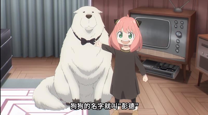 “神兽”相关设定、剧情:第13-15集,阿尼亚想要养宠物,黄昏带着她去组织旗下的军犬贩售店,但是阿尼亚不满意,而这时黄昏被组织的人带去司令部,因为管理官发布紧急召集令,因为歹徒是柏林特大学的排外主义学生,今晚要实行布朗兹外长暗杀计划,经过审讯他们用的是狗体炸弹。而邦迪就是这里面的狗狗之一,它拥有预测未来的能力,当它从阿尼亚面前路过的时候,阿尼亚通过读心术读到它脑中的未来,于是想要找狗狗,结果走进了恐怖分子的据点,当她被发现的时候,狗狗保护了她,随后带着她逃走了,虽然狗狗围着据点跑,还被追上抓住,但是阿尼亚要被杀的时候,约尔出现把他们打跑了,还根据阿尼亚的话给警察局打电话报警。只是阿尼亚从狗狗预知的未来里知道了黄昏死掉,西国和东国因为外长被杀而战乱爆发,阿尼亚为了拯救黄昏改变未来,带着狗狗离开,理由是爸爸在厕所太久没手纸她去送纸。而这边恐怖分子大部分被抓,只有主犯奇斯·克卜勒漏网,他想要反过来设计并除掉妨碍他计划的人,于是故意在钟塔广场附近设置炸弹陷阱。阿尼亚和狗狗赶到钟塔广场,看到了主犯奇斯,通过读心术阿尼亚知道了奇斯设计的陷阱,她想要拆掉炸弹,但是完全不会这些,也不想被黄昏发现她的读心术,更不想和平被破坏,于是在这个炸弹陷阱的门上用番茄酱写下死亡讯息!好在黄昏发现了这个情况,没有让炸弹引爆,而阿尼亚从狗狗预知的未来看到了黄昏回来了。之后黄昏易容成大臣,故意引奇斯上钩,虽然奇斯用手榴弹把黄昏的同伴甩掉了,但是还是被黄昏伪装成的大臣耍的团团转,炸弹也被黄昏扔进了河里引爆了!约尔飞踢把逃走的奇斯连人带车给踢的撞了路灯晕了,然后阿尼亚、黄昏和约尔碰到一起。黄昏批评阿尼亚乱跑以身犯险,现在没事算是松了口气,然后想要把狗狗交给管理官他们,结果阿尼亚非要狗狗,还说如果不给她这只狗狗她就学坏不去上学,最后管理官妥协。阿尼亚本来想要用养狗狗的事吸引次子的注意,结果被次子本狗狗的名字,她因忘了起名而懊恼,回家就给狗狗起名叫邦德!