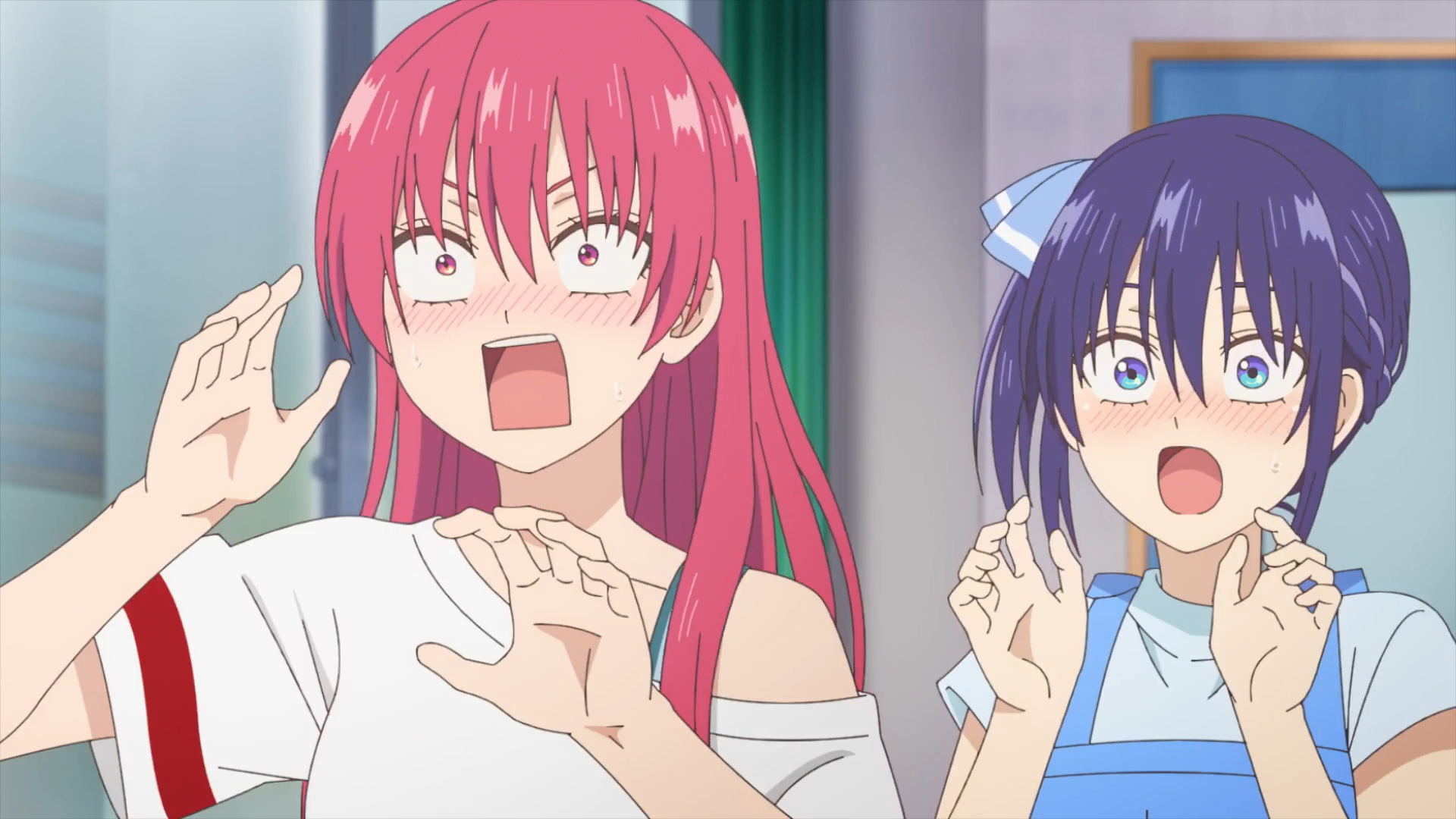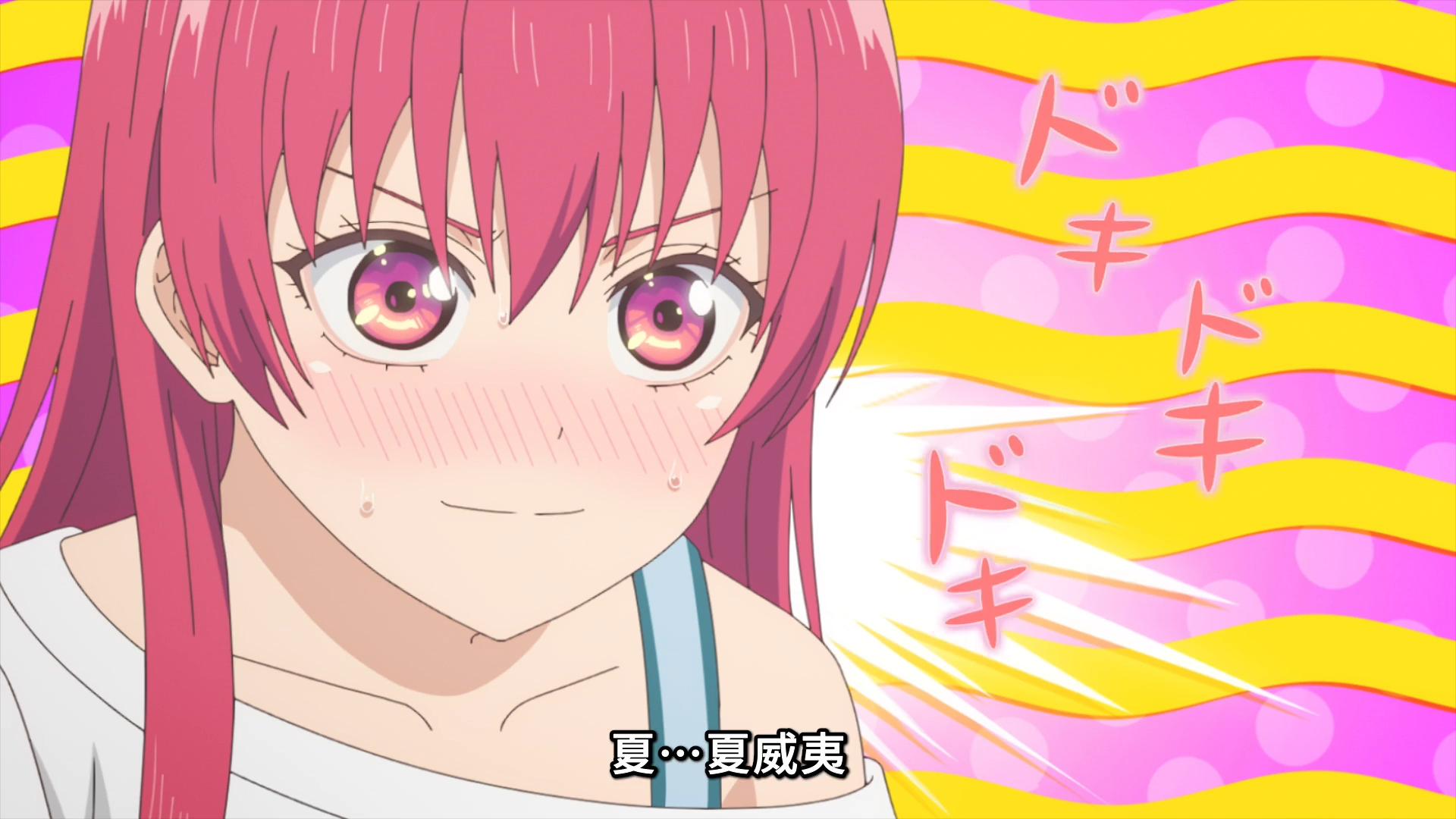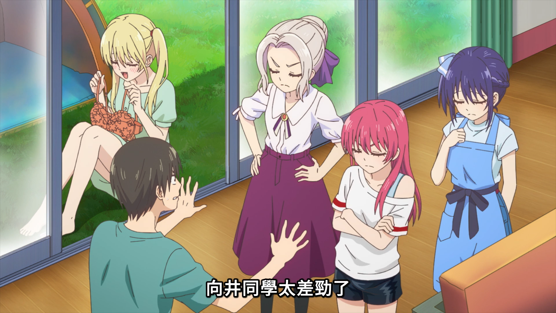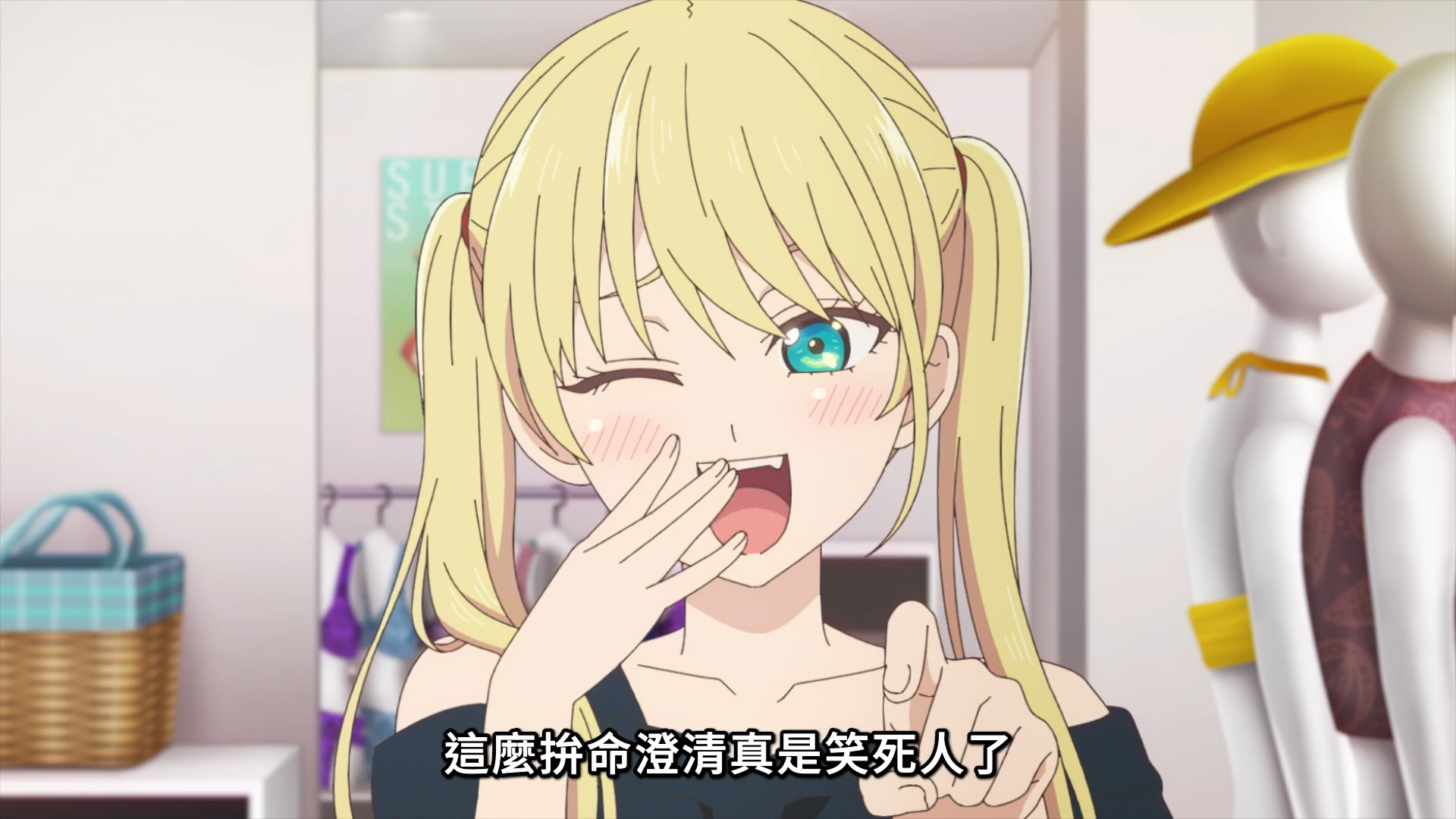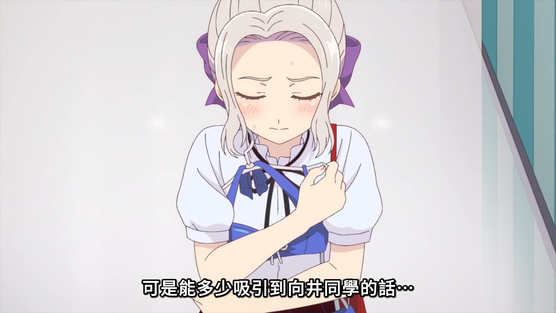然后就是本集最有趣的一个场景了——蜜莉卡叫住了紫乃,直接说:你是不是喜欢直也啊,紫乃对此十分慌张,赶紧用设计好的回答拼命掩饰:“为什么会这样想?难道是因为我买了直也挑选的泳装?不不,这其实是因为我喜欢这个泳装的设计!”(蜜莉卡:我问你了吗.jpg 这么连贯的设计好的自问自答显然有鬼啊)