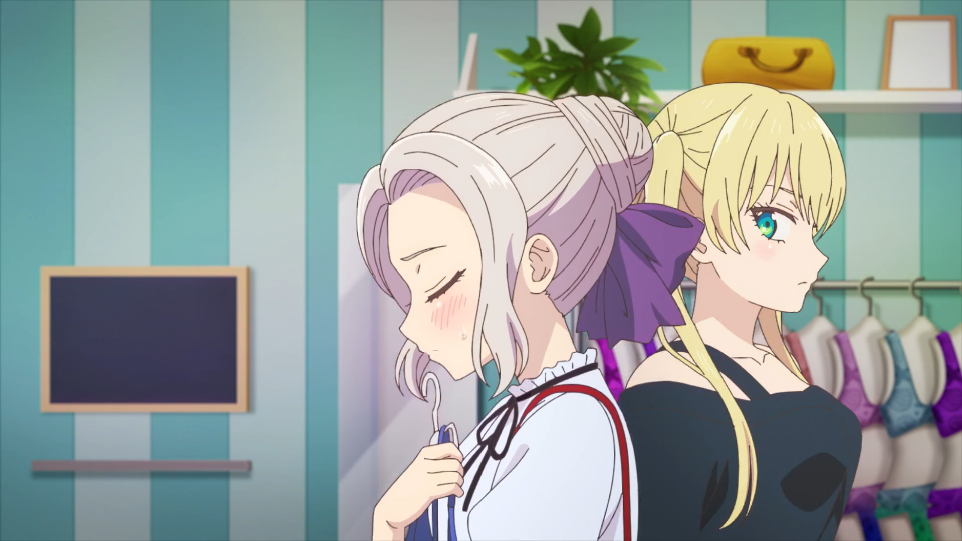 面对咲、渚、和蜜莉卡的内衣决胜的“修罗场”,紫乃对直也的感情又被唤醒,她想象着直也对自己内衣的心动指数会是多少(导演:别担心,一会儿给你安排上)