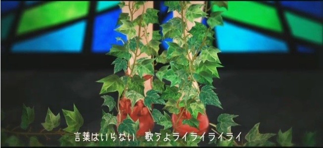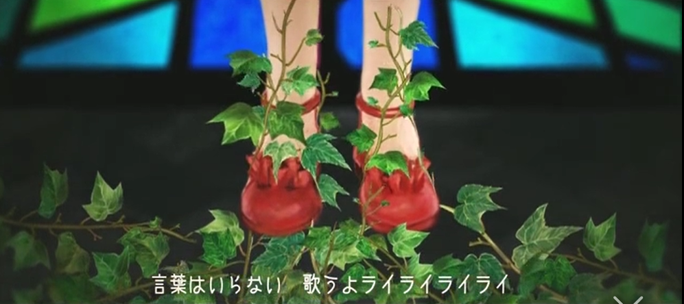 这是快要被吞噬殆尽时候的一张截图。从这首歌一开始就反复听到【并不需要任何话语 来唱歌吧 Lai lai lai lai 体好碍事啊 来唱歌吧 Lai lai lai lai】这一段话,有一种预感,而之前的影子进一步肯定了这个预感。明明是被吞噬的悲惨命运,但是少女们是发自内心的想与周围化成一体,有一种无力的悲伤,但又有一种守望者少女们愿望达成的欣慰。