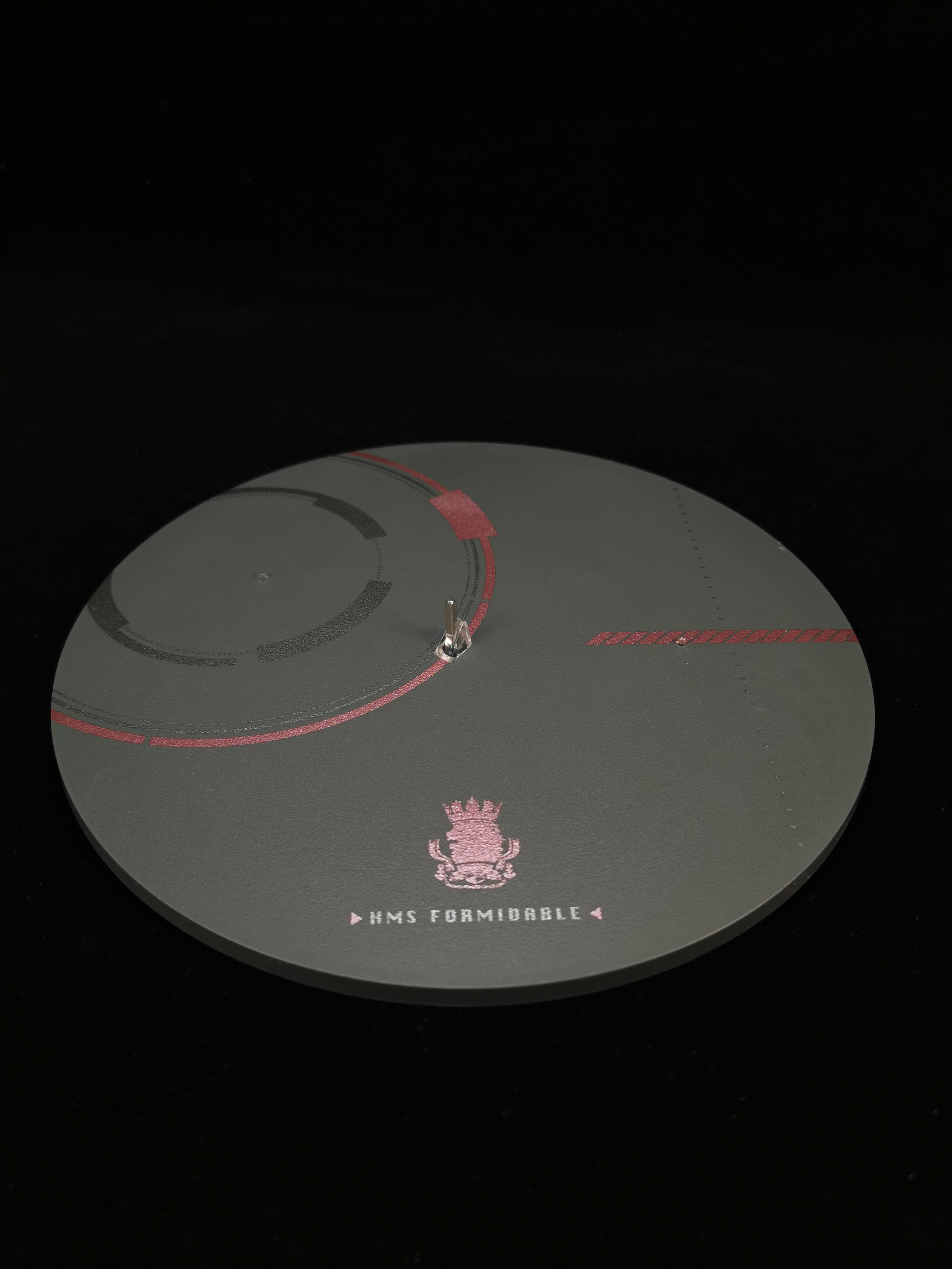 底座是印有舰队阵营标志的圆型底座,可畏属于皇家舰队,印上了狮子头的舰队标志