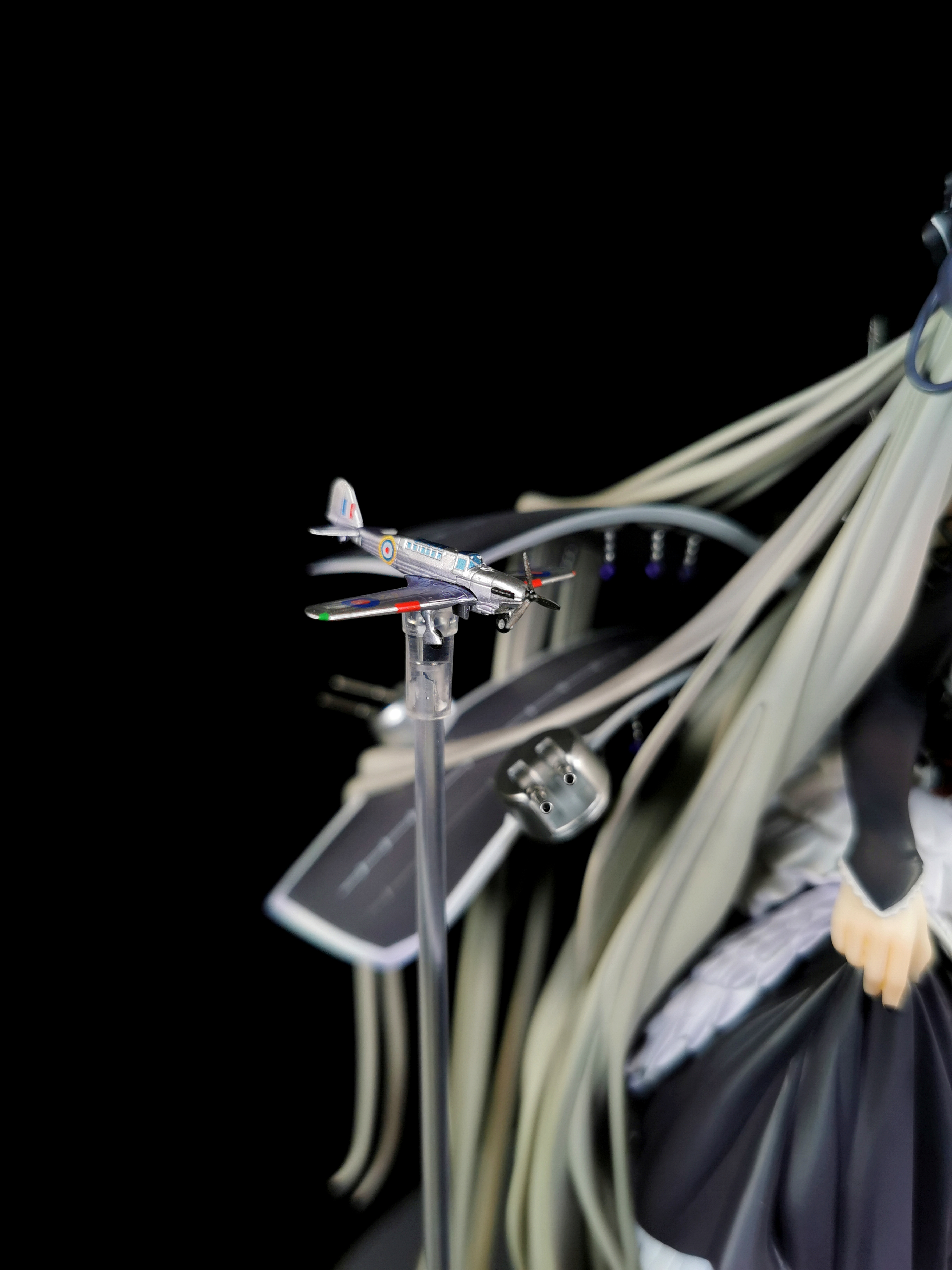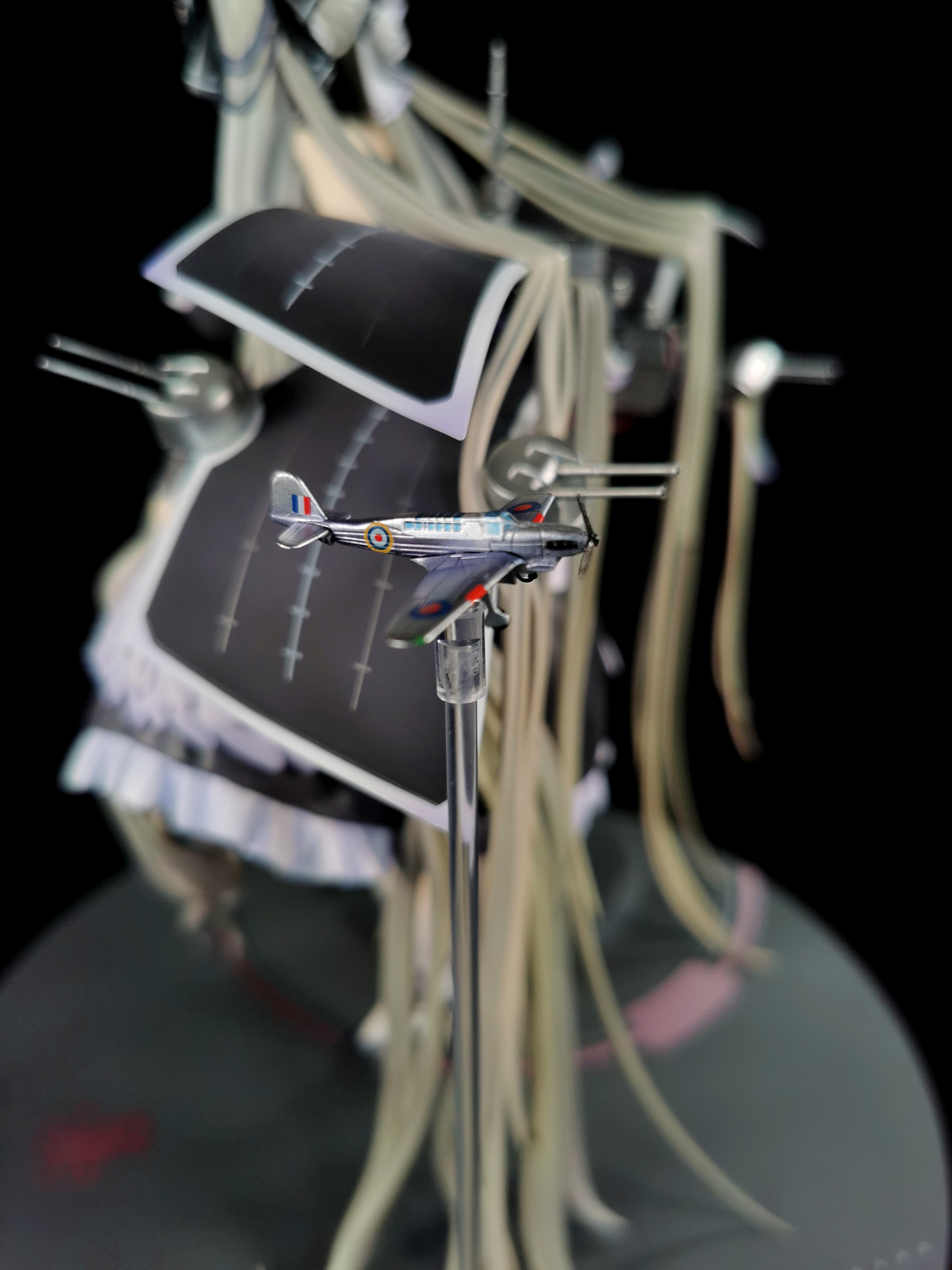 战斗机并不与手办本体以及底座相连,而是用了两根独立放置在底座上的支撑柱