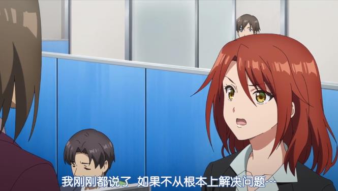 相关剧情:第10集,公司企划案的新游戏已经到了即将发售的阶段,但是御法彩花绘制的新角色还没有如期交过来,而公司已经向游戏用户公开了这条消息,不可能再延期下去。而因为这些原因还有使用公司研发引擎开发的不稳定,导致工作进度大幅落后,河濑川英子所在的工作组大家已经在加班加点的工作,然而面对未来一个月后要发售的游戏,依旧形势严峻,接下来的工作状态简直是人间炼狱!公司老板依旧把这些重担和压力全部扔给了河濑川英子!即使午休桥场恭也约河濑川英子在外面边吃便当边喘口气,河濑川英子也依旧眉头不展。聊到工作的时候,河濑川英子直言这企划案简直就像地狱一样,只因为她接手企划的时候,老板已经把合同签完,里面全是要用公司自制的引擎运行的条款,而引擎本身极不稳定,总是会有各种各样的BUG出现,而对方的要求又不断更新,事情几乎没玩没了,她现在都想撂挑子直接飞去冲绳旅游,问题是她接手的时候合约已经签订,完全没有回转的余地!加班加点工作依旧各种BUG,游戏上线迫在眉睫,老板一个劲的催促,但是河濑川英子只能耐心的解释如果不从根本解决问题就没法继续,可是老板完全不听解释,只看结果!