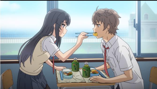 相关剧情:自从梓川咲太当着全校师生的面向樱岛麻衣告白后,已经过去一个月了,因为之前樱岛麻衣要求他连续一个月告白后,才给他答复,所以他也坚持告白了一个月,在教室里,两个人一起吃樱岛麻衣亲手做的便当的时候,梓川咲太再一次告白,樱岛麻衣听到后说一个月听你说同一句话,我已经没有感觉了,不会心动了!虽然咲太抱怨说这是她之前要求的,但是她立刻转移话题说自己接到的新工作里有吻戏,咲太让她拒绝掉,结果麻衣说又不是第一次,第一次是和咲太KISS的,但是咲太什么也想不起来,他努力回想,怀疑是发生在青春期综合症导致忘掉麻衣的那段时间!麻衣说还以为KISS就能让咲太想起我,然后一副伤心失望的样子,咲太要麻衣给点提示,麻衣却说那就再来一次,咲太表示务必,麻衣让他闭上眼睛!麻衣戏弄他用鸡蛋卷间接KISS,咲太立刻吃掉鸡蛋卷,并说和她间接接吻也很开心,还说学姐故意说吻戏这件事,实际上根本不是她的吻戏,故意让他心里不舒服所以学姐性格恶劣,麻衣就回他你就喜欢这样的我,结果梓川咲太说自己心要凉了,因为她的那句不会心动了!说完麻衣立刻激动的说:我可没说不行!咲太乘胜追击问她行吗?学姐害羞的点头同意了!