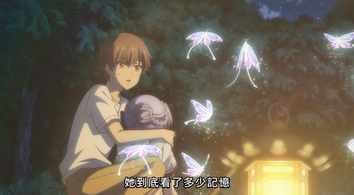 至此,苍也是看到了蓝的记忆,在那天晚上,苍跑掉之后,蓝因为没有相信苍而陷入了内疚,于是打算去找到那种会发光的蝴蝶,来证明苍并没有说谎,结果意外发生,蓝摔下了悬崖……