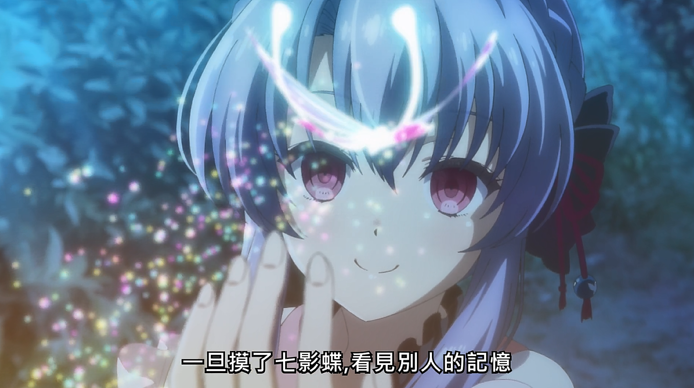 就在那个时候,苍突然看到了一种发光的蝴蝶(即七影蝶),但周围的人都不相信她,为了找到那种会发光的蝴蝶,让大家夸奖她,苍在晚上一个人独自外出,结果便是被蓝找到了,虽然蓝提议可以两个人一起去找,但苍表示如果是和蓝一起找到的话就没有意义了,于是便留下蓝一个人跑掉了