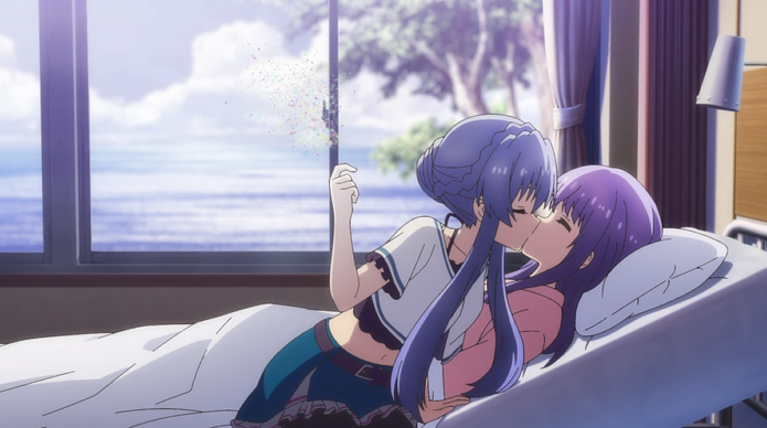 之后,嗨梨通过kiss的方法,将蓝的七影蝶传递给了苍……