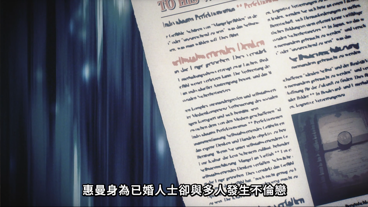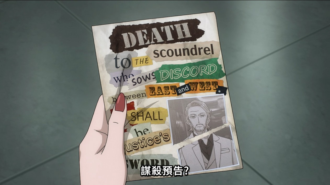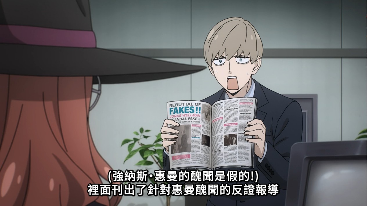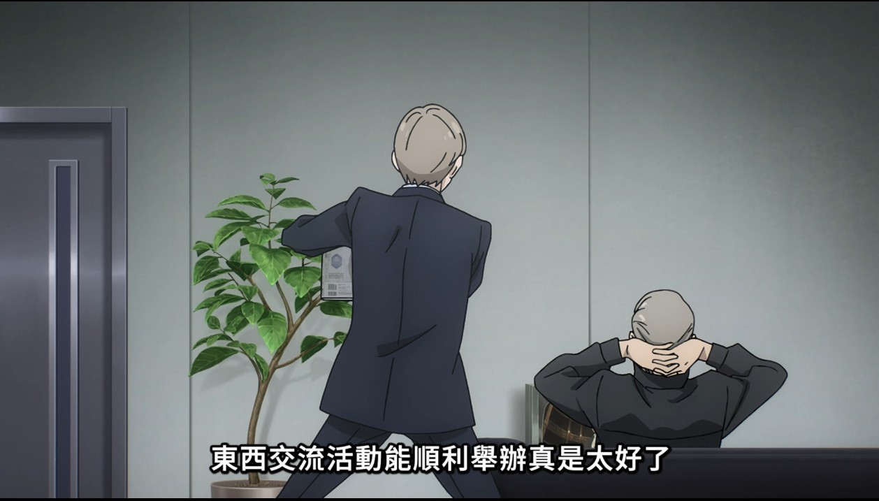 画面切回办公室。其他间谍汇报事后的调查,“据说那个警卫果然就是寄出预告信的人”,通报完刺客的信息后菜鸟又开始吐槽道这家伙为啥自以为是社会代言人啊。完全没理菜鸟(对,看样子是耐心磨光了233)的管理员看着刺客的资料,有点感慨。对此管理员觉得需要自我警惕,不要像他一样。一旁的菜鸟说自己这次学到了一个教训,体会到自己多么无知和肤浅(哦豁,开窍啦),并表示自己之后不会再被骗了,表示完的他走向电视机前,说打算等歌唱家回国后去看一场他的延迟“聊表歉意”,但是一旁的间谍泼冷水道他很有可能就逃亡到西国了,因为他的偷情对象之一是黑手党的太太,菜鸟震惊了,拿起那篇反转报道开始反驳。不过这位间谍没接他的话茬,感叹道“东西交流活动能顺利举办真是太好了”。