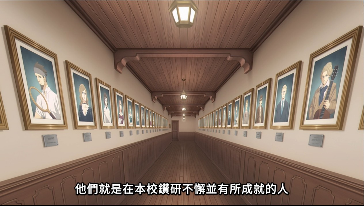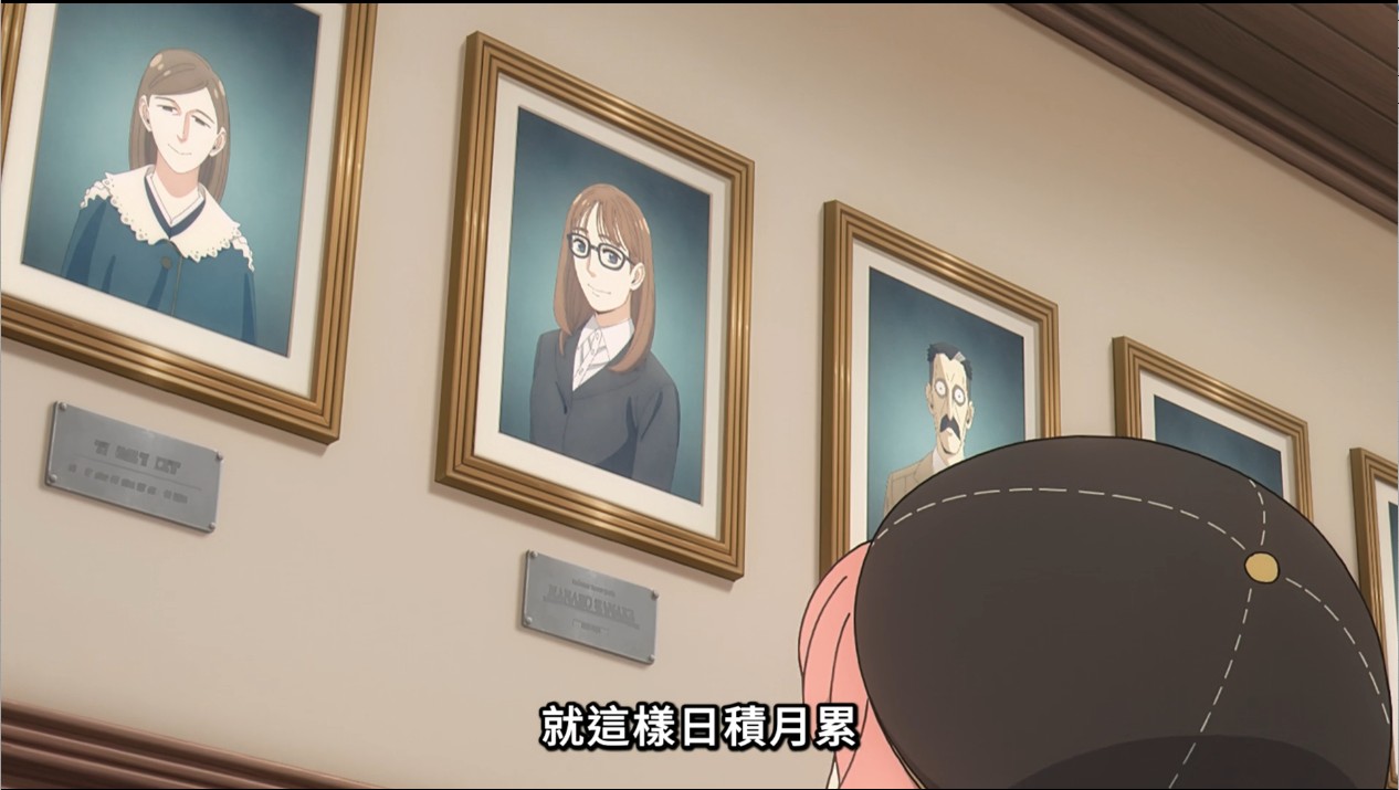 看样子优雅大师有点生气了,他打开了一扇门,引导阿尼亚进入门后的走廊。走廊里挂着很多人的肖像。优雅大师一边训诫阿尼亚不要看轻皇帝的学生和星,一边向阿尼亚表示这可是建校以来五百余年用荣誉慢慢建立起来的称号(确实,哪里如此廉价)。等阿尼亚迈进走廊后,优雅大师示意阿尼亚看两侧的画像。