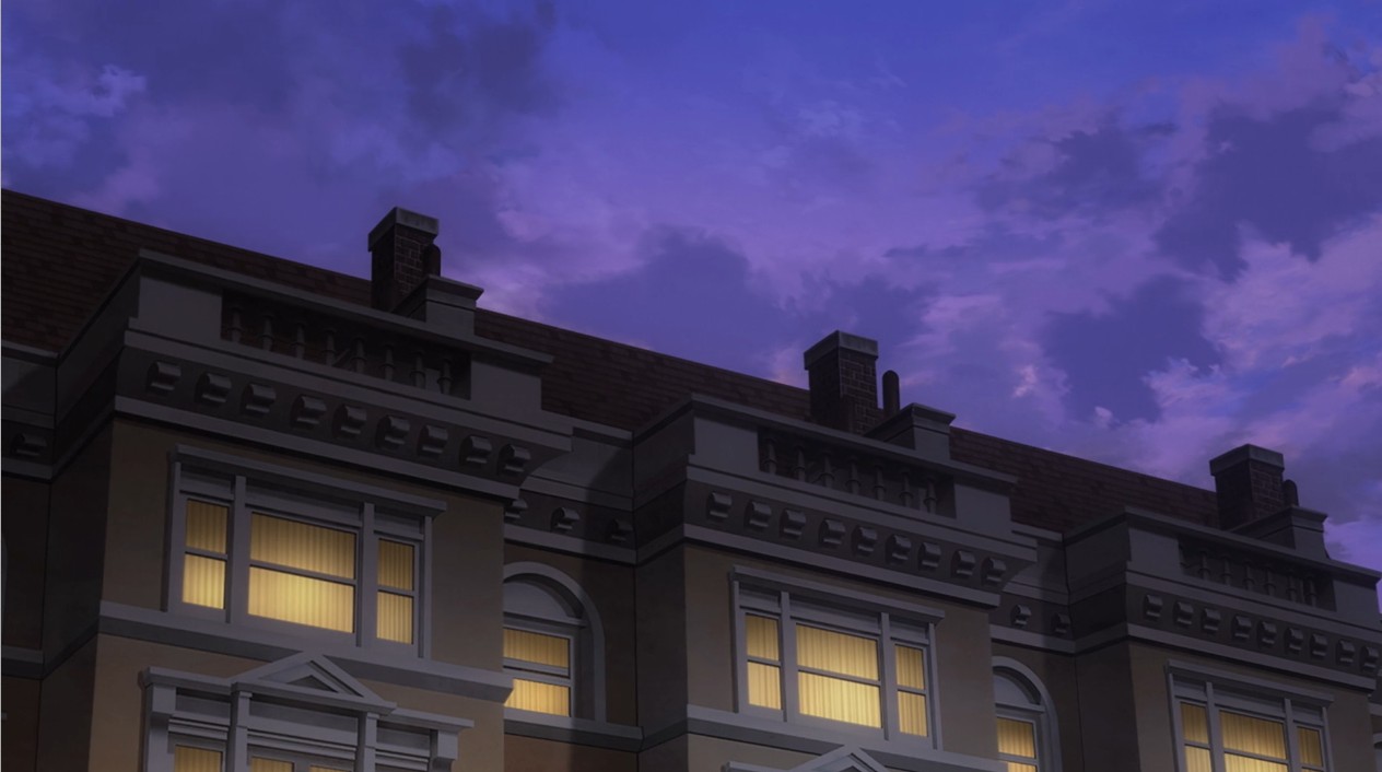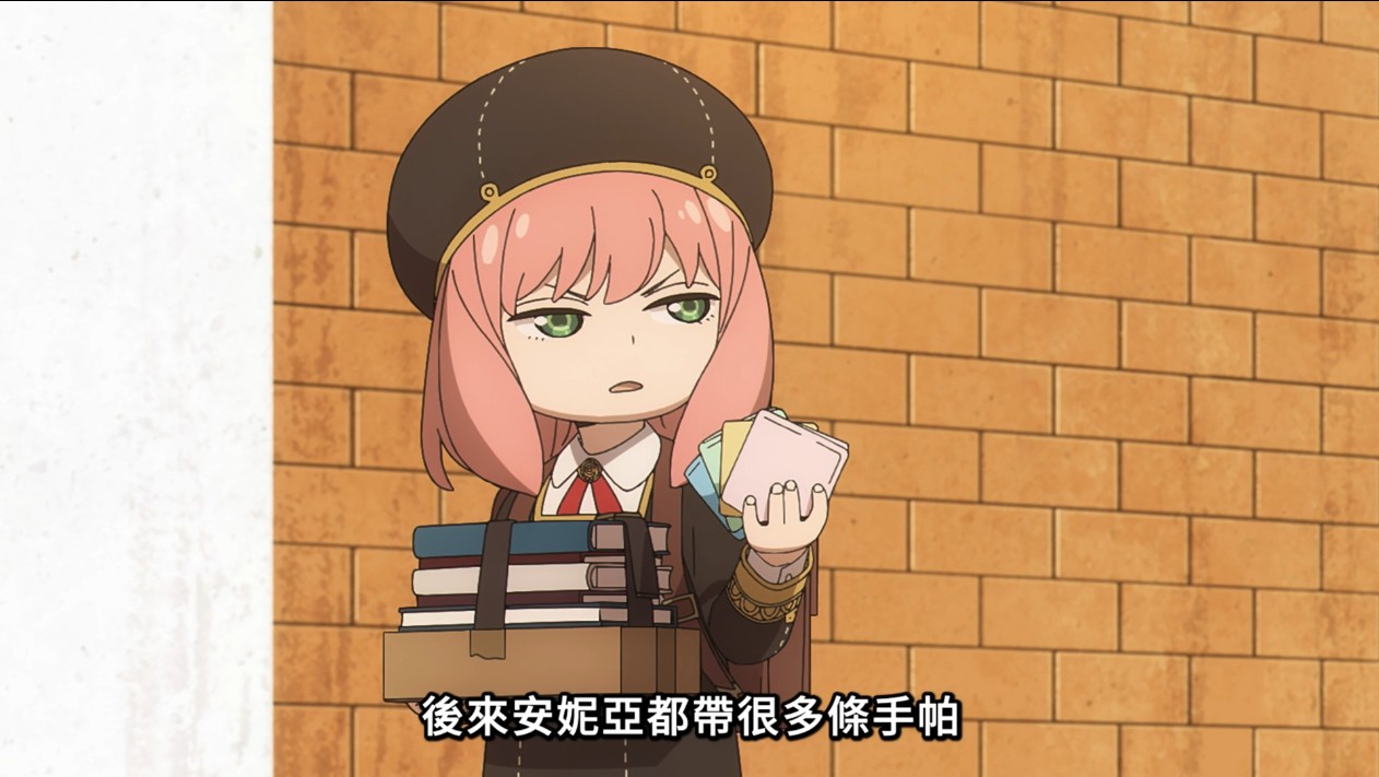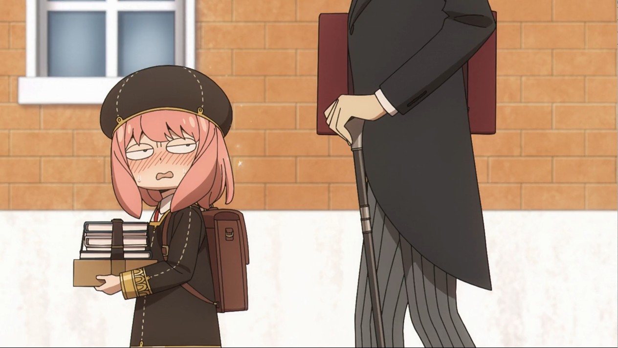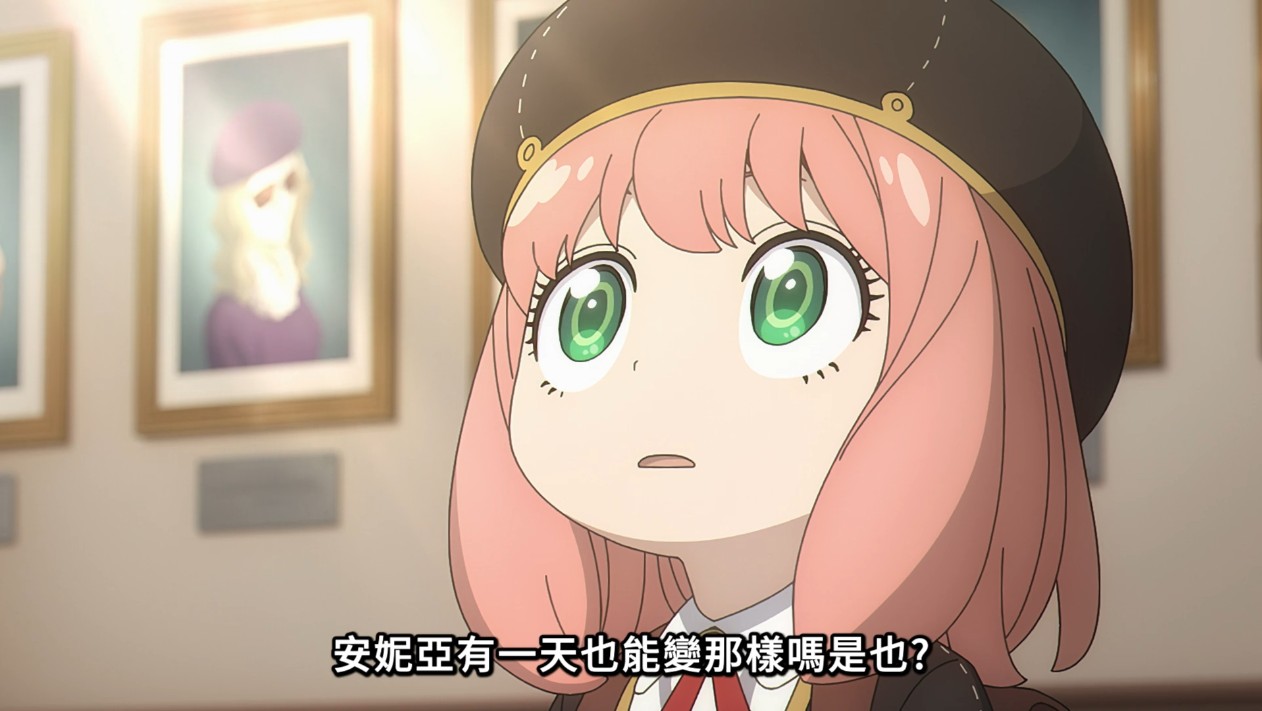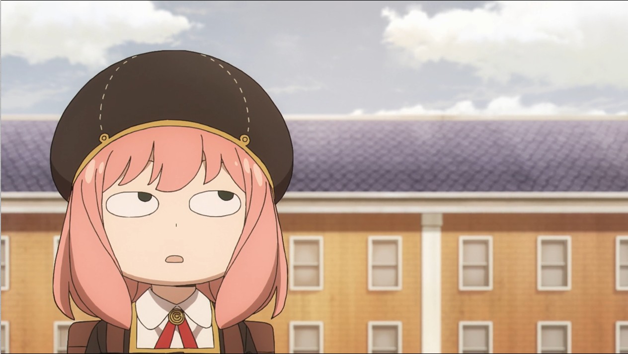 上一个故事告一段落,新一个故事接踵而至。画面从有些冷调的地下办公室切换到黄昏下的学院。看样子是放学了,阿尼亚跟贝姬告别后孤零零的等着巴士。