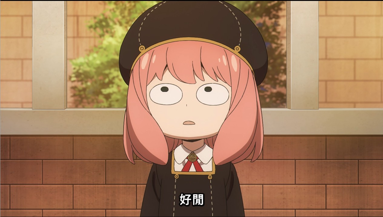 但是很不巧,司机突然生病,得延迟发车了。旁边的明显比阿尼亚大的学生们各自找各自的方式去消磨时间了,只剩下阿尼亚独自坐在车站里(话说这表情是真的难绷,然后没想到阿尼亚是真的坐得住)。