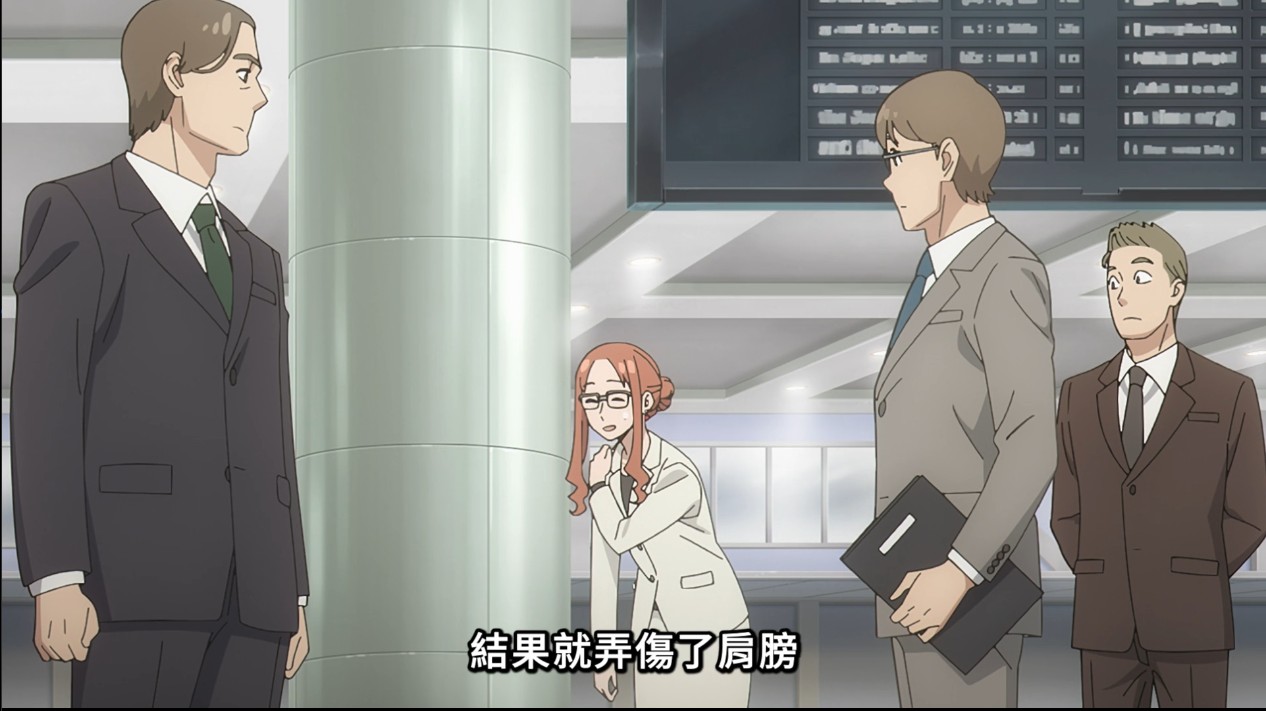 画面转到机场,歌唱家即将动身前往西国。起飞了。离开了。似乎还是不放心于是在现场的管理员总算松了口气,开始按揉自己的痛处(估计太突然加力道比较大所以有点肌肉拉伤?)