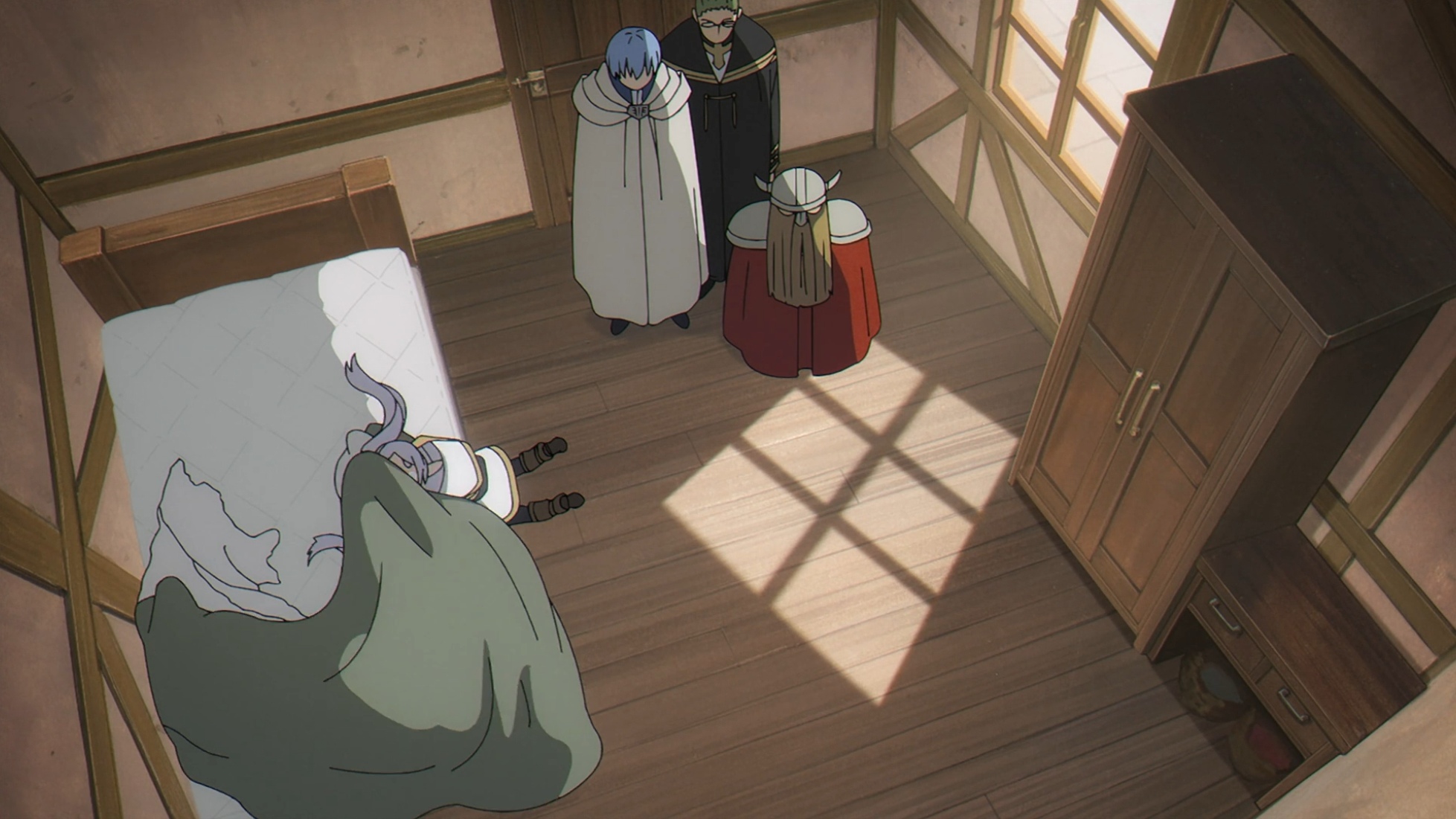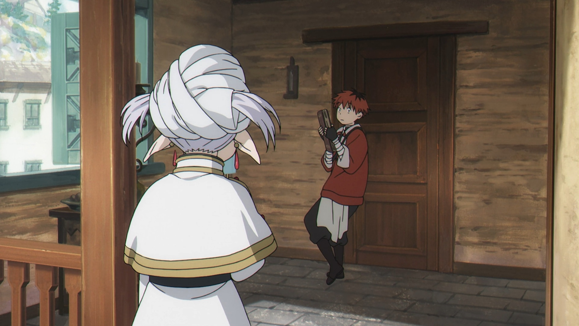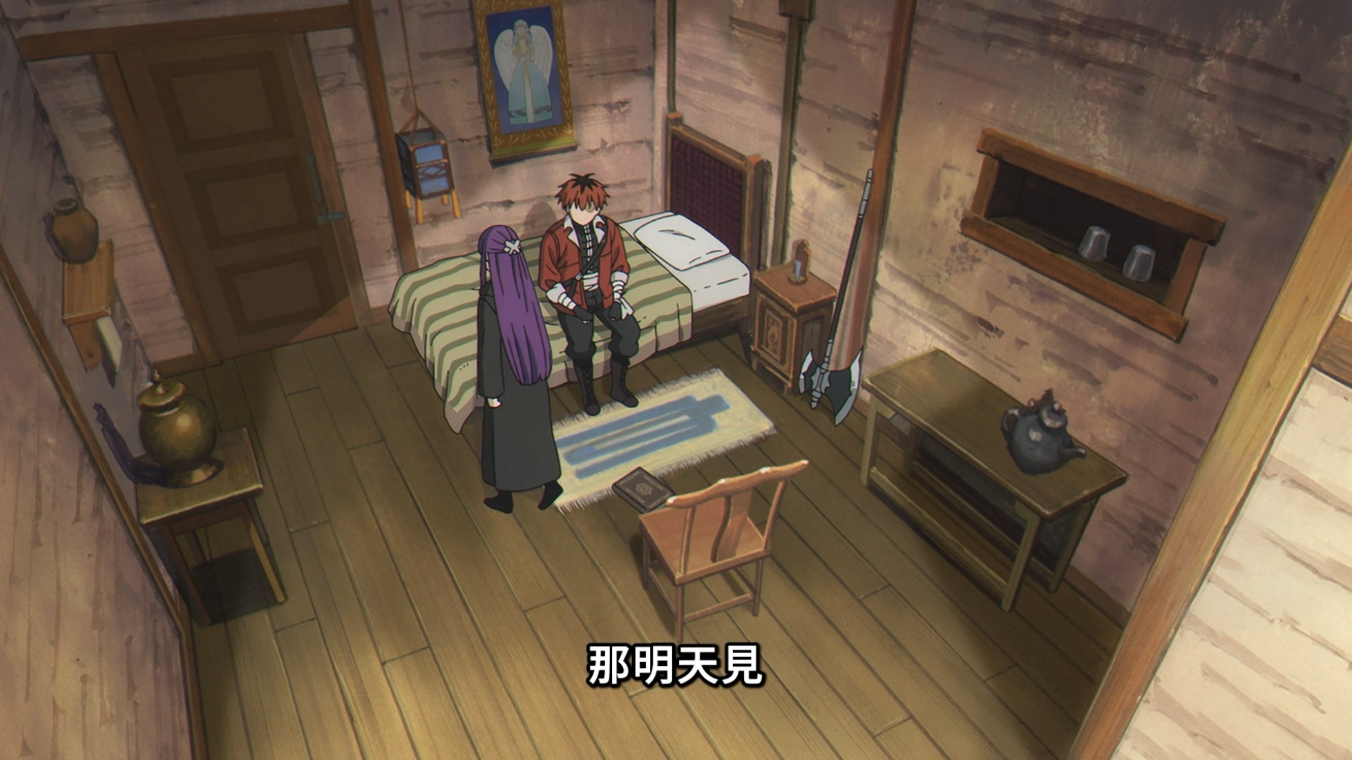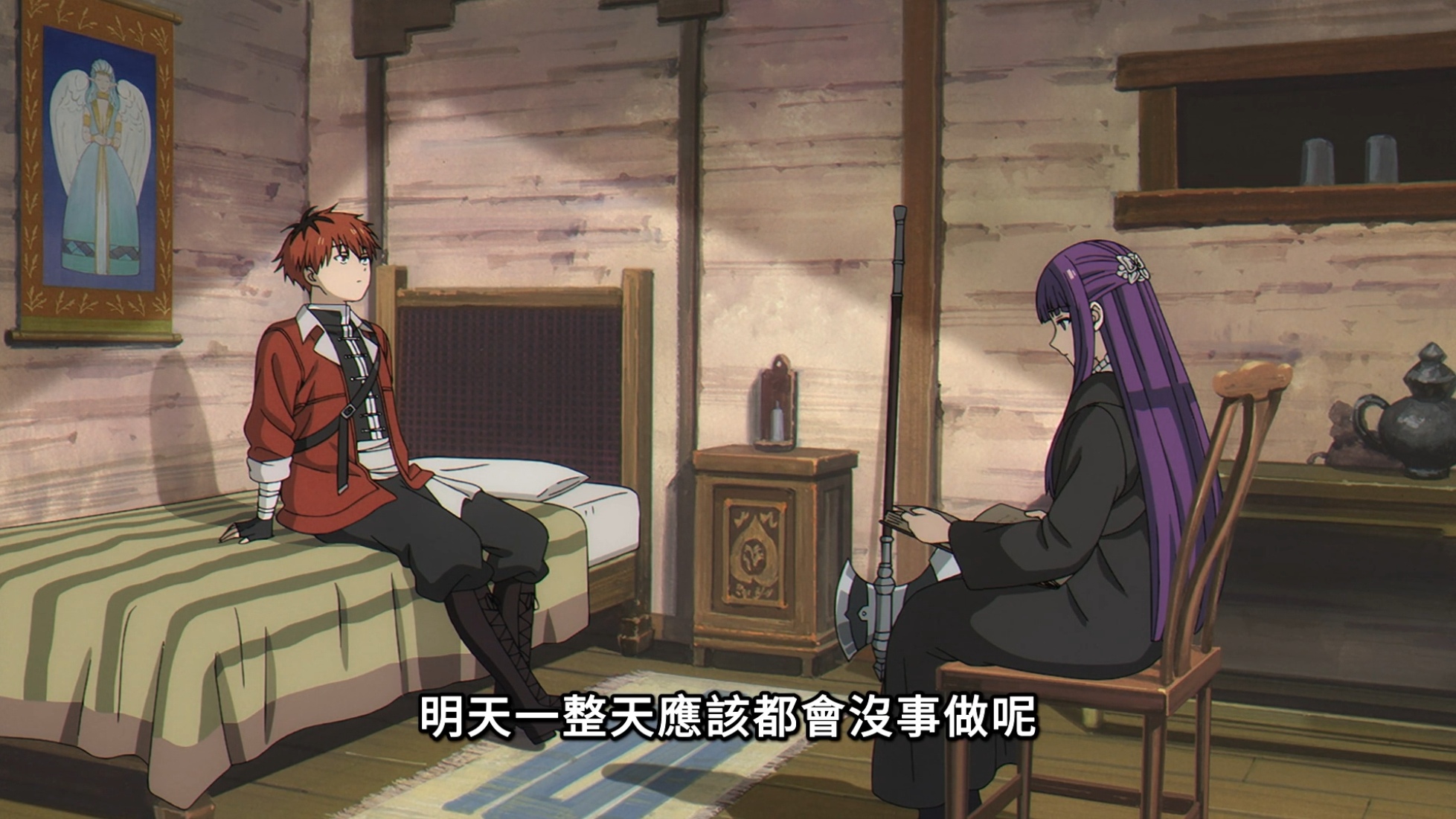 到了城镇的芙莉莲一直在泡温泉(看样子是憋老久了),闲下来的修塔尔克和菲伦就待在旅馆里干自己的事情。聊着聊着菲伦就开始暗示了。但很明显修塔尔克没听懂,他还在自顾自的顺着说明天去趟武器店的话,这让菲伦不太高兴了。