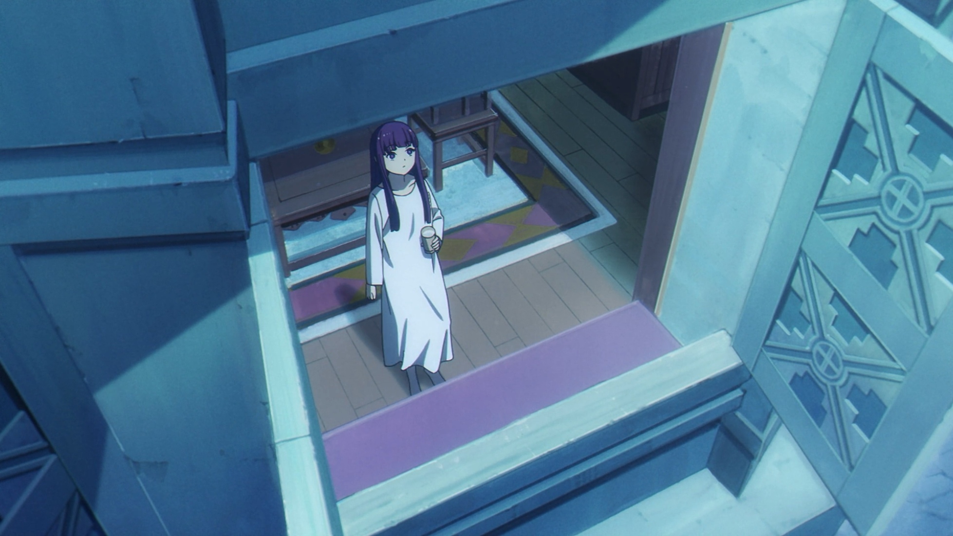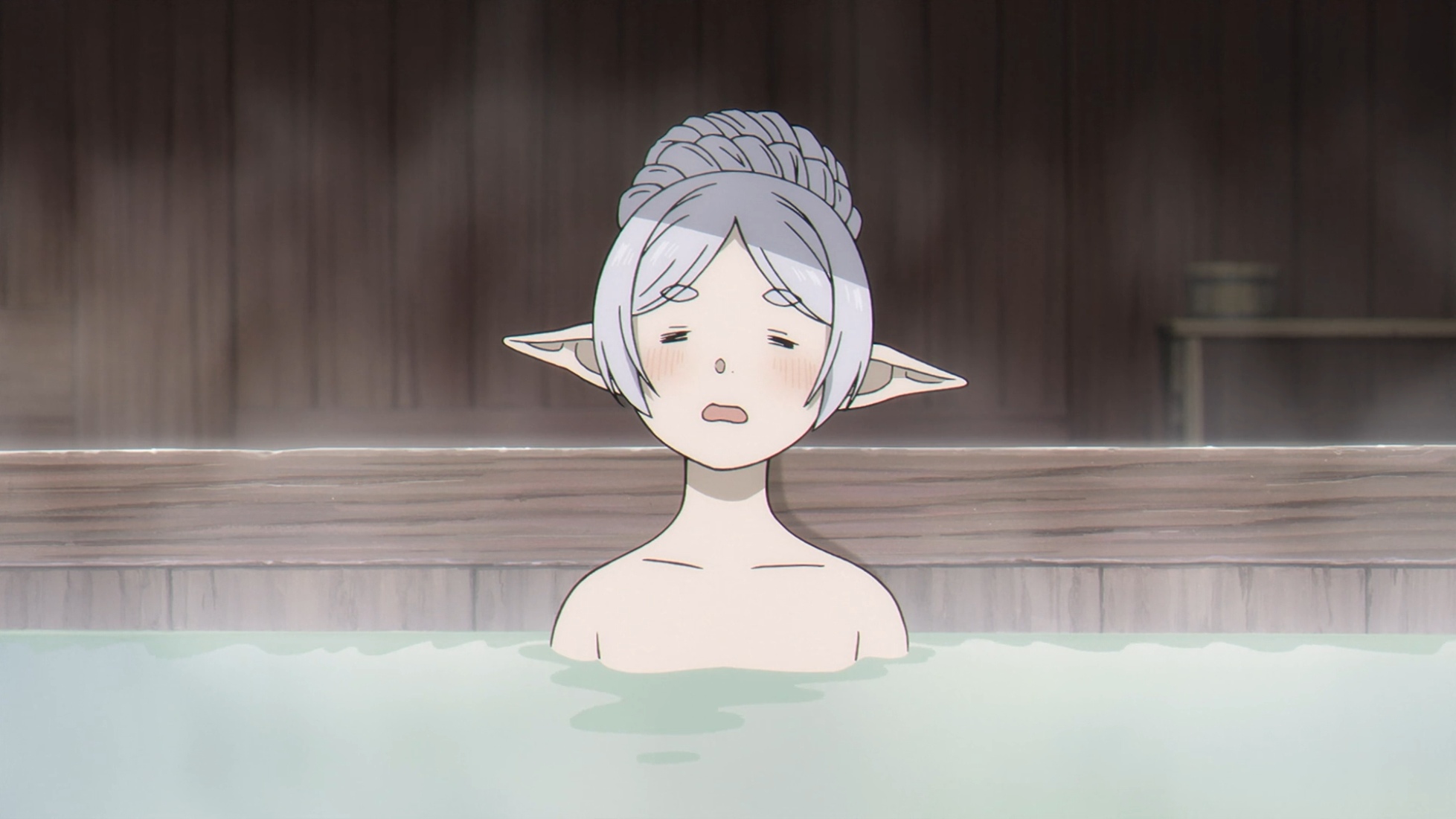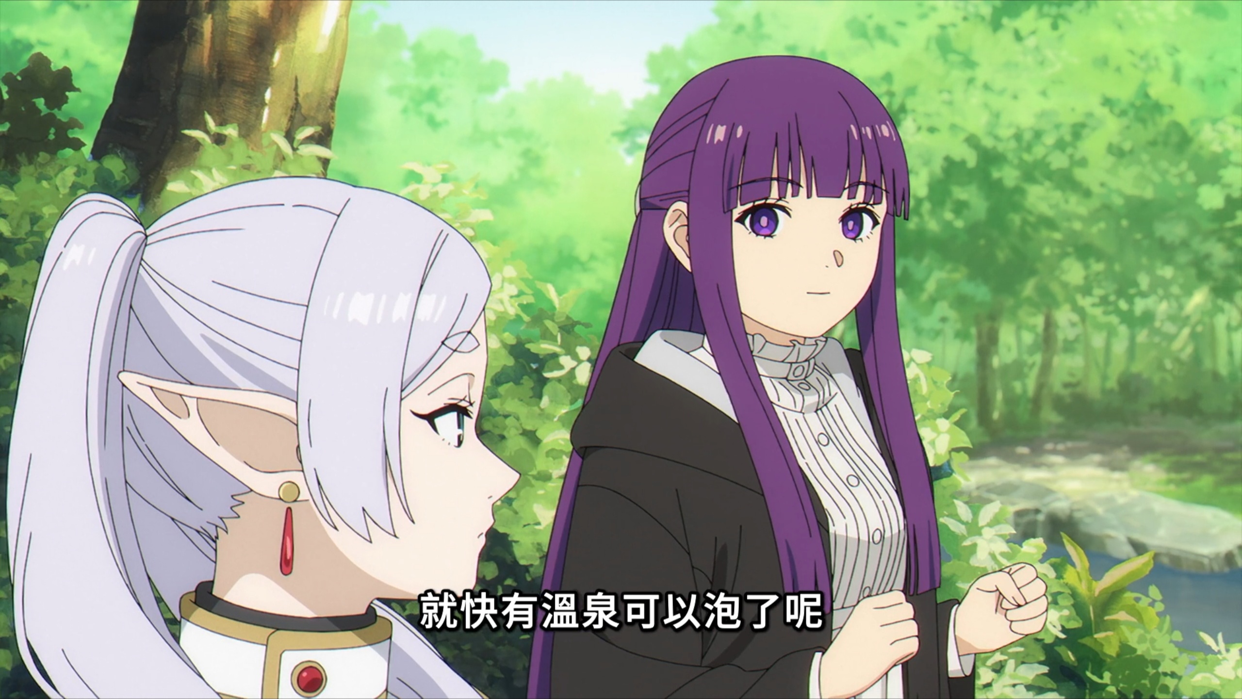 在感慨几句后,芙莉莲表示只能忍耐到下个城镇再泡了。在得知还有一个星期的路程才能到城镇时,修塔尔科问到这附近有温泉吗(这块修塔尔科在说这话的时候没看芙莉莲她们,一般修塔尔科说话是会看着对方的),确实有,是后面山上一处名叫秘汤的地方。