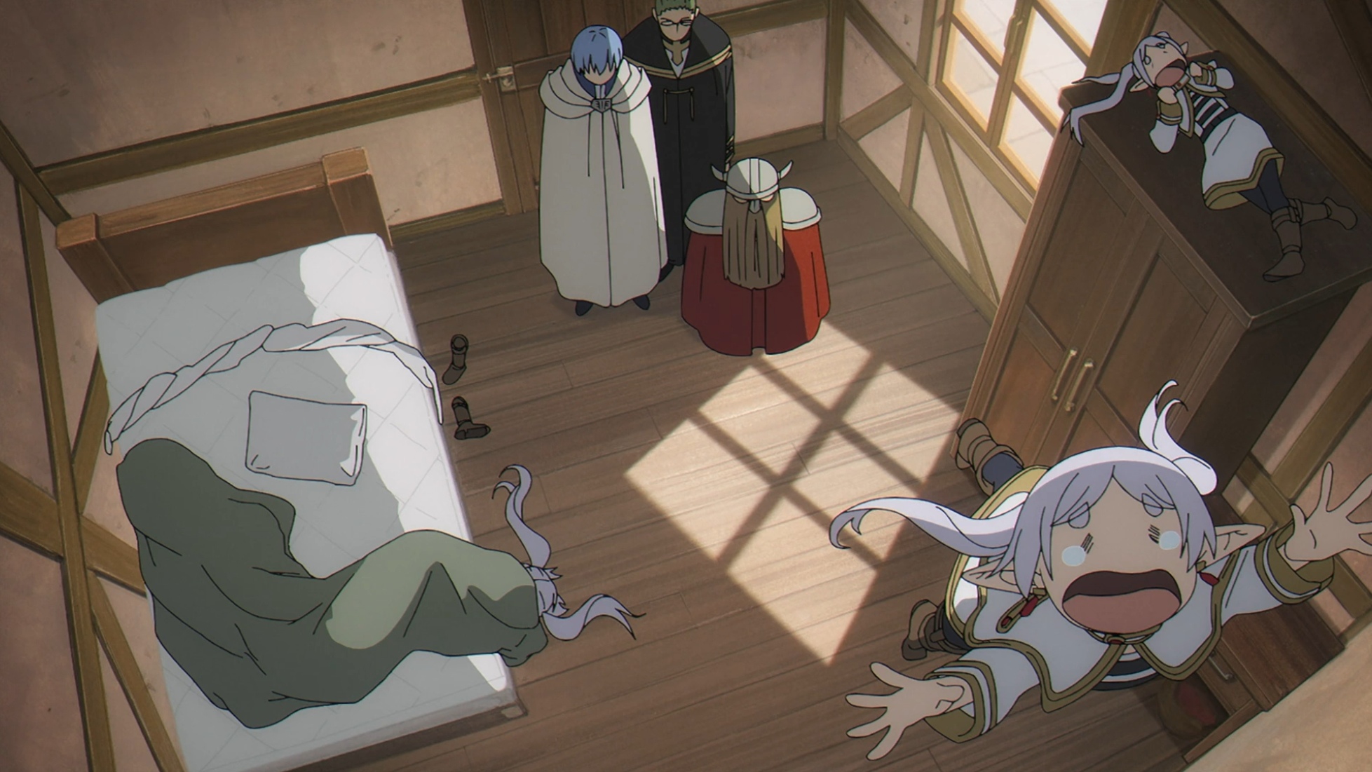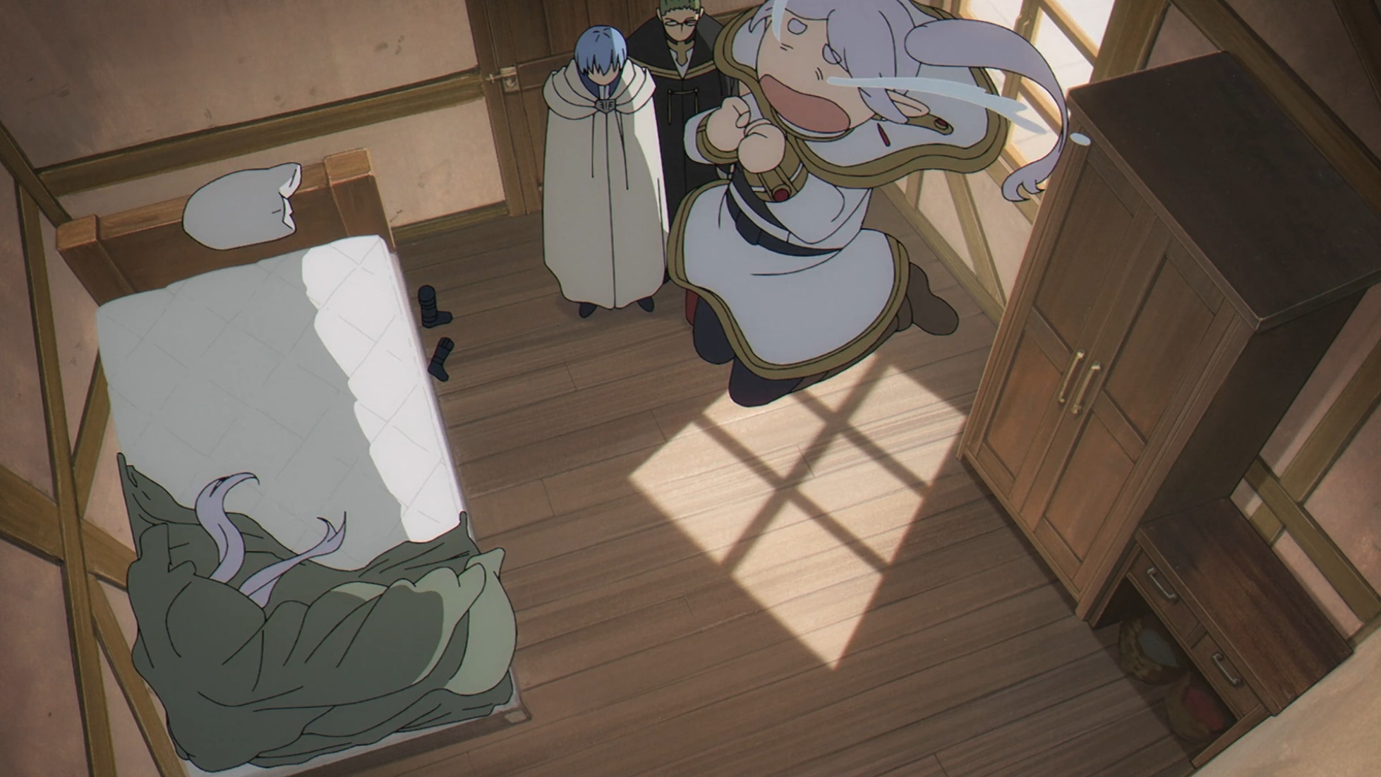 芙莉莲俩人立刻升空,准备狙击脑袋。正当芙莉莲沟通完大致计划准备行动时,菲伦叫住了芙莉莲(依旧好奇宝宝),那答案自不必说,诱饵大法好()