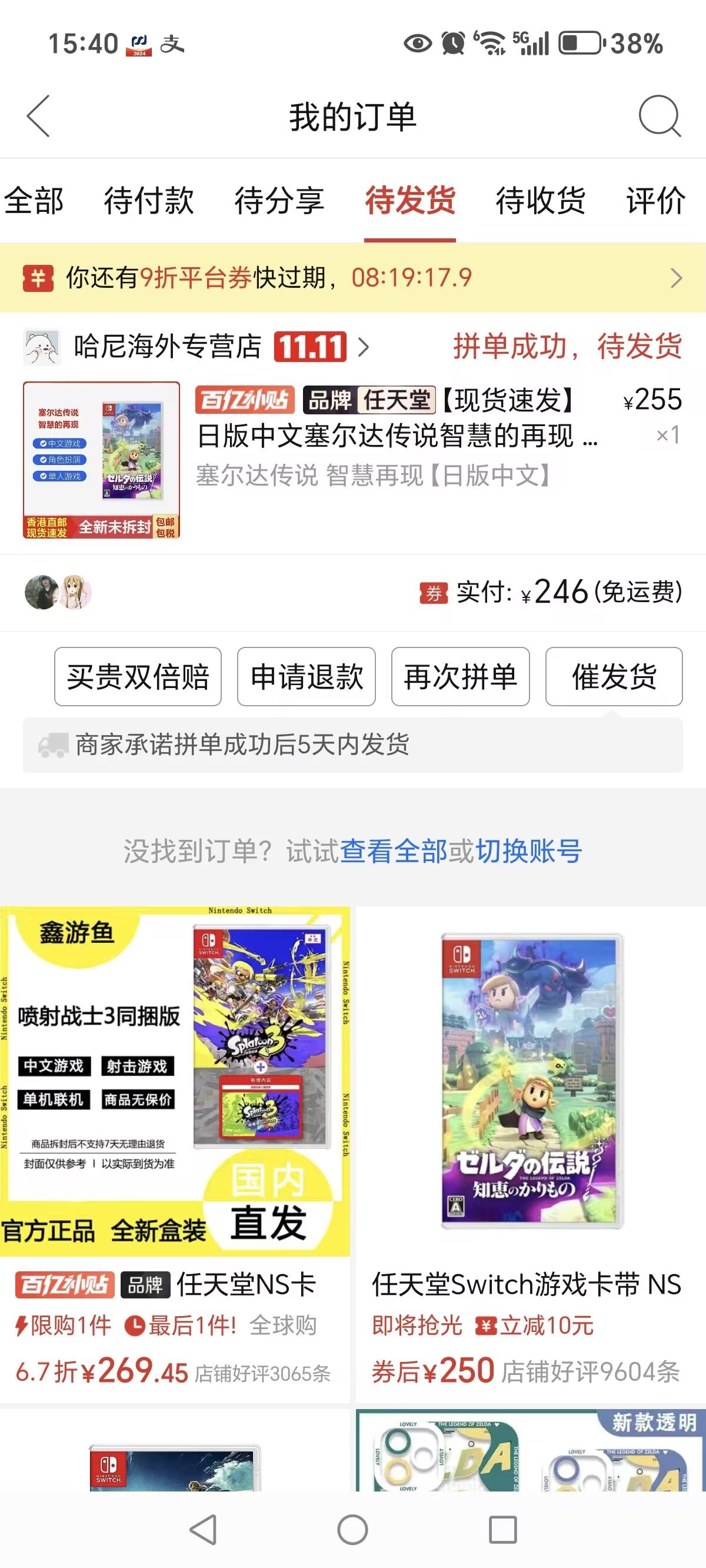 入坑Nintendo Switch两年多来入的第8张实体卡带,也是第一个非超级马里奥IP的游戏,不过同为任天堂第一方游戏。卡带是日版卡带,侧边无划痕,任天堂日服领了77个金币。PS.为了刷百亿补贴加倍补和积分兑换券,我绑定了微信,开了新号买,其实之前买过一次塑料袋,只是太久没用忘记了。然后设置里面没有改地址,默认是之前最新一次保存的地址,造成了派件地址不是我这里,就算我昨天戳了客服在线急着改地址都没用,今天物流状态显示十几个小时派件中,晚上直接开电动车去搬家前的地址,包裹看到了_(:з)∠)_