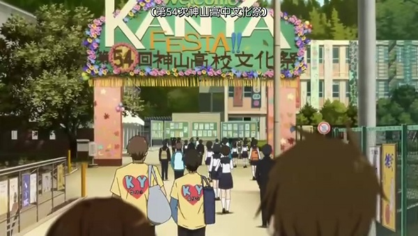 相关的剧情介绍:神山高校的文化祭与其他学校的文化祭没什么太大的差别,在剧情中可以看到女主角千反田爱瑠曾参加过百人一首的歌牌社团的游戏,其他社团也有V家的COS,但冰菓的学园祭一直有一个名叫KANYA祭的昵称,此昵称一直是古典部类似禁语般的存在,这是因为在45年前,千反田的舅舅关谷纯在学园祭期间,因为众人不满校长强行将学园祭缩短至2天而发动的学生运动而做了替罪羊,最后的结果就是关谷纯被退学,神山的读法是KANYA,但在日语中,关谷的读法也是KANYA,所以所谓的神山祭也是关谷祭,也就是“学生们为了文化祭而献祭了关谷纯的人生”的指责。