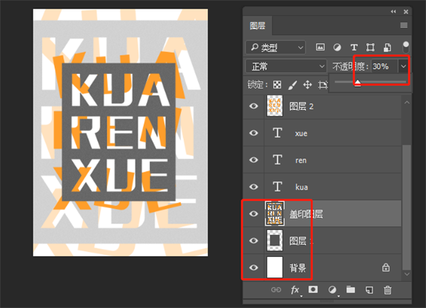 9、盖印图层(ctrl+shift+alt+e),把盖印图层拖到文字图层下方,放大(ctrl+t),降低不透明度,执行:滤镜--模糊--高斯模糊