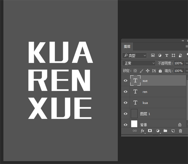 5、用选框工具,把文字一个一个框选出来,按ctrl+t可以改变位置和大小,如图所示: