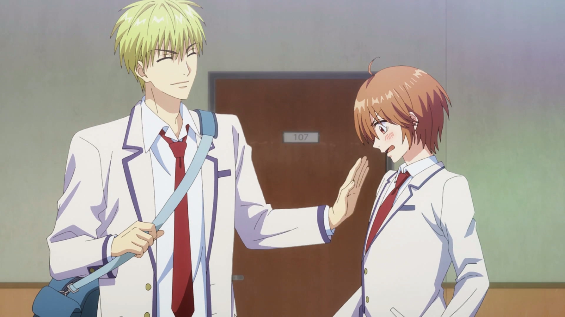 瑞稀看到了佐野不同以往的冷漠,发现了佐野的另一面,对佐野的好感up,途中为了躲避突然过来的车,出现了壁咚名场面,这也是在佐野知道瑞稀是女孩子后的第一次近距离接触,两个人都很害羞(这时佐野已经开始对瑞稀有一点心动了吧www)