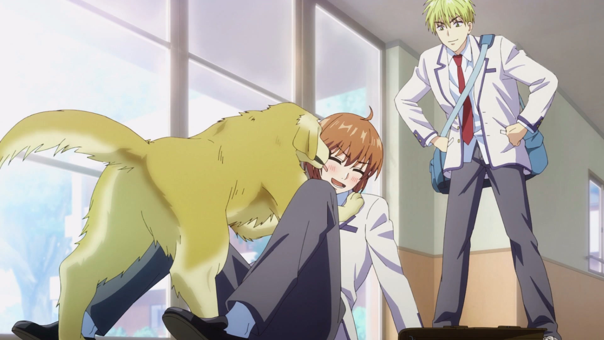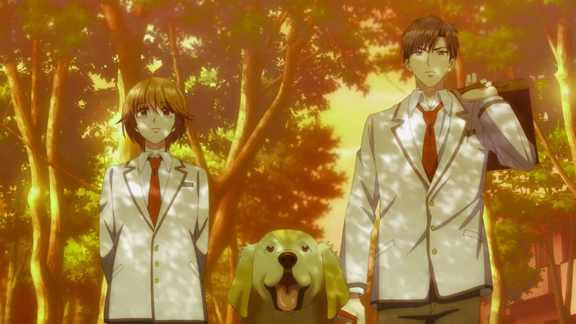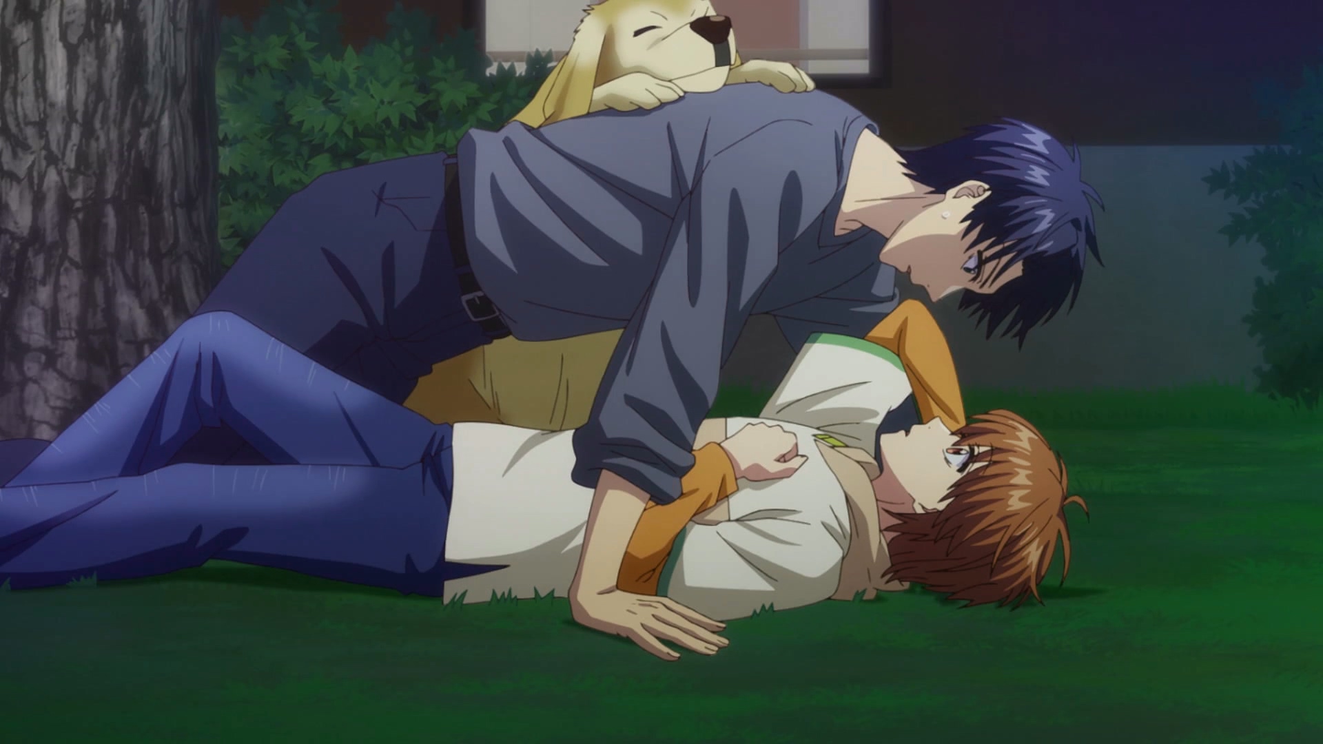 两人一狗在回宿舍的路上,瑞稀问佐野刚刚那个女生是谁,佐野也只是随意的说了是国中的朋友,并且告诉了瑞稀是如何领养了裕次郎。