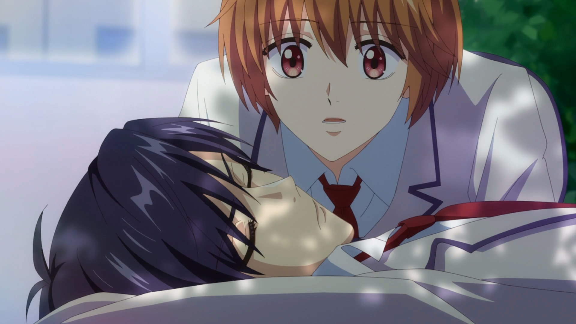 瑞稀在庭院中发现了睡着的佐野,悄悄的坐在他的身边近距离的看着他(虽说是女生,但是在不知情的外人眼里,他绝对想和佐野交往的意思XDD),就在此时佐野因为熟睡倒在了瑞稀肩膀上,再加上裕次郎的神助攻,呈现了佐野扑到瑞稀的这个画面。(裕次郎good boy,两个人的很多画面都有裕次郎的功劳XDD)