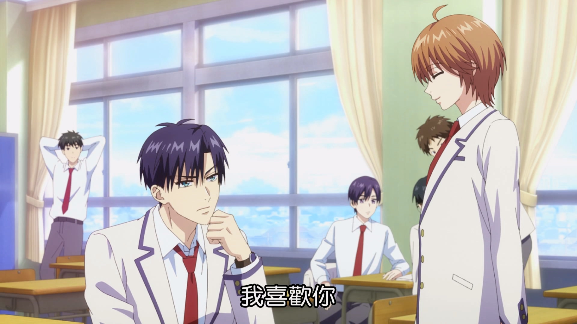 课间,瑞稀来到佐野面前,直白的对佐野表达自己对他的喜欢,对于从美国回来的瑞稀来说,这只是很单纯的表达喜欢想结交朋友的意思,然而在其他人看来,美国boy第一天就向佐野告白,男生的告白,让佐野误会直接回绝“我没那种兴趣”(不同的文化带来不同的效果www)