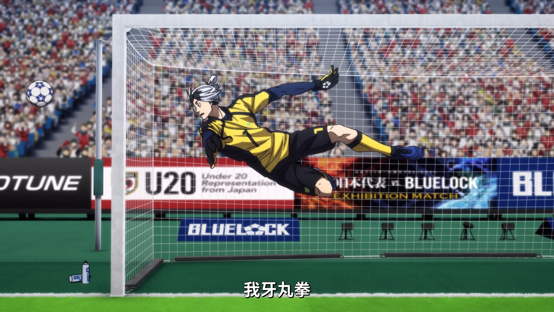 这集就是冴的个人秀吧,球还在场内,冴很快持球,以近乎零角度的位置成功射门,U20的第一个球由冴射进。