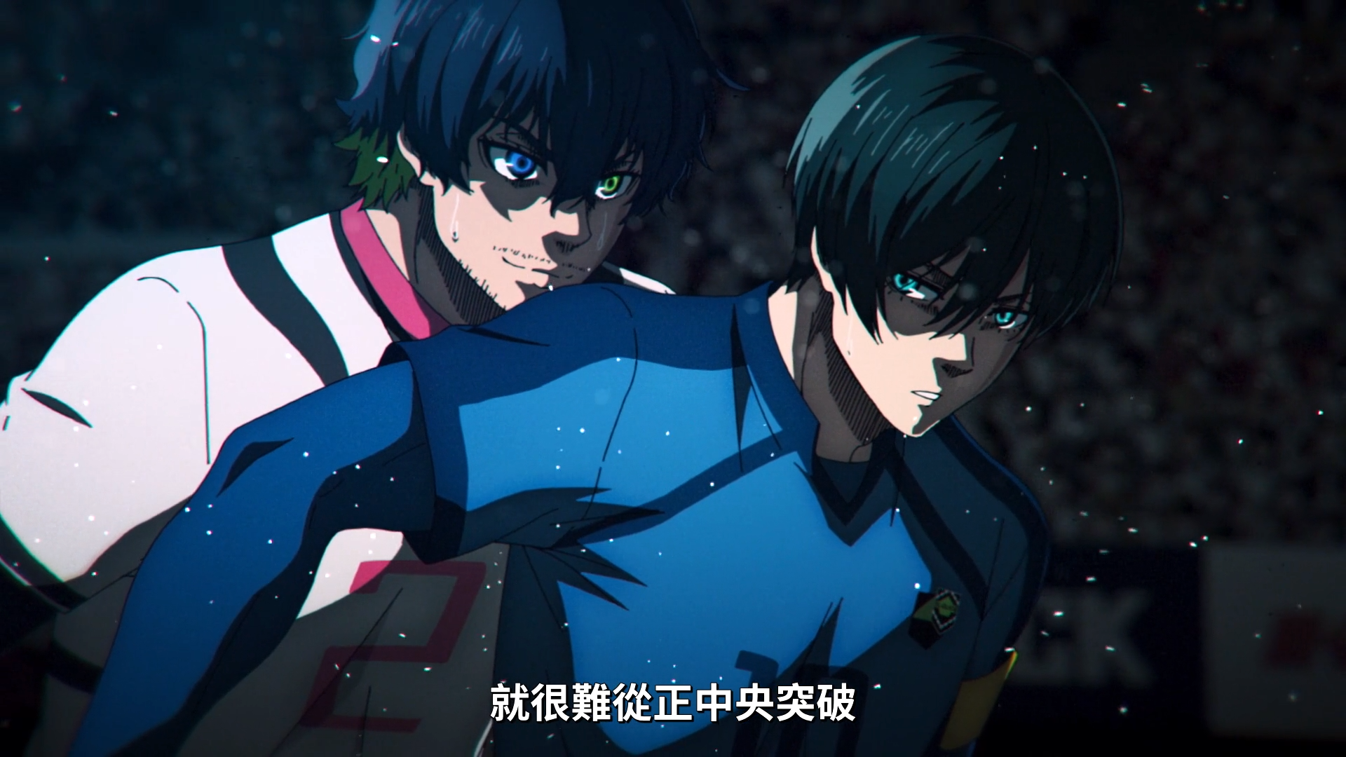 比赛进行中,因为之前的多次传球,都被爱空抢断成功,蓝色监狱现在很难从球场中央突破,洁无法将球传给凛。
