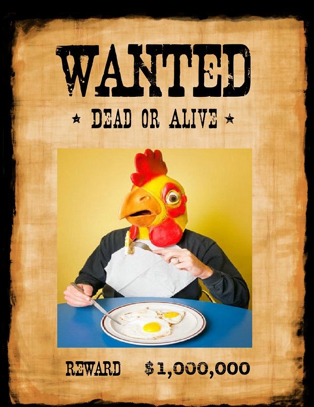 3) 用紙/小畫家/PS 畫出一張的可疑的雞頭人身通緝令 和懸賞的金額。