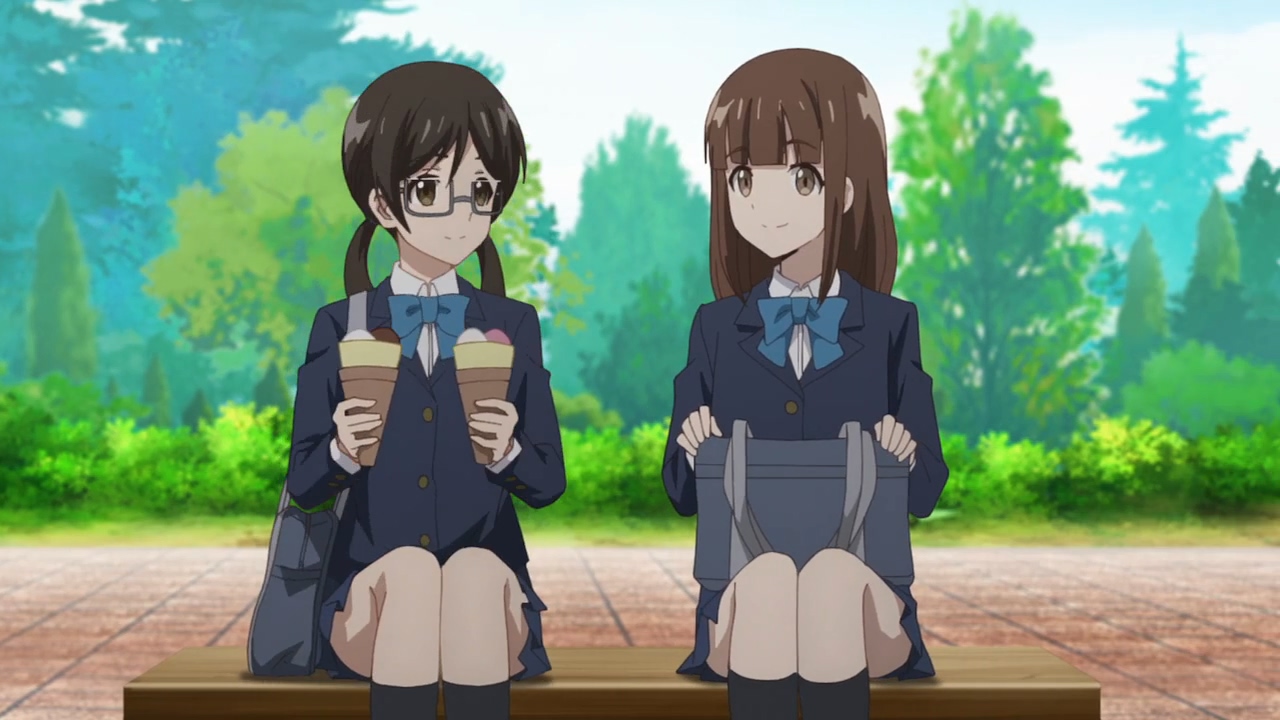 沙优和吉田看着外面,无意瞥到了外面的JK。感觉好巧啊,外面的2个人那发型都和之前的结子和现在的沙优的是一样的,那沙优看到2个人非常友好的相处,会不会睹物思人呢。其实人就是这样的,感情动物,很容易因为一件事情,一句话,一个动作等想到以前的某个人。现在沙优也肯定是想到了结子,毕竟是学校第一个和自己成为朋友的人,那当然关系非常的重要,可惜结子已经远去,再也回不来了,留给沙优也只能是无限的哀思了。而这次回来,处理这事情,事情的原点不就是结子吗,这一话的后半部,沙优回学校,回到天台,也就是结子自杀的地方,说明她的心里还是想着结子的。
