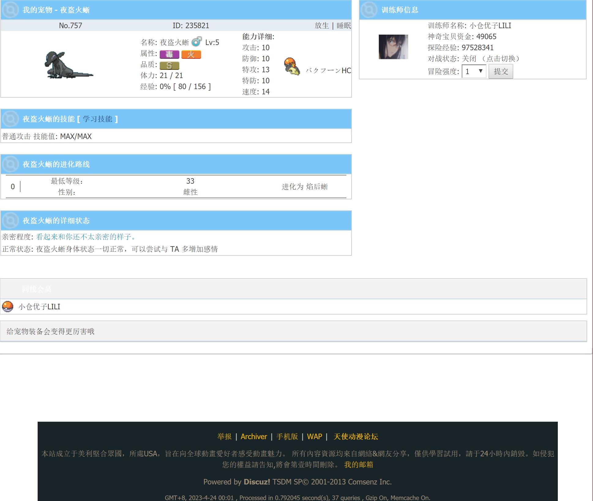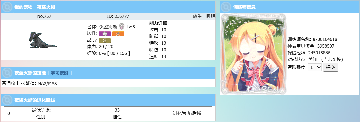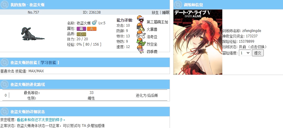 现阶段公的夜盗火蜥能通过强制升级盒进化