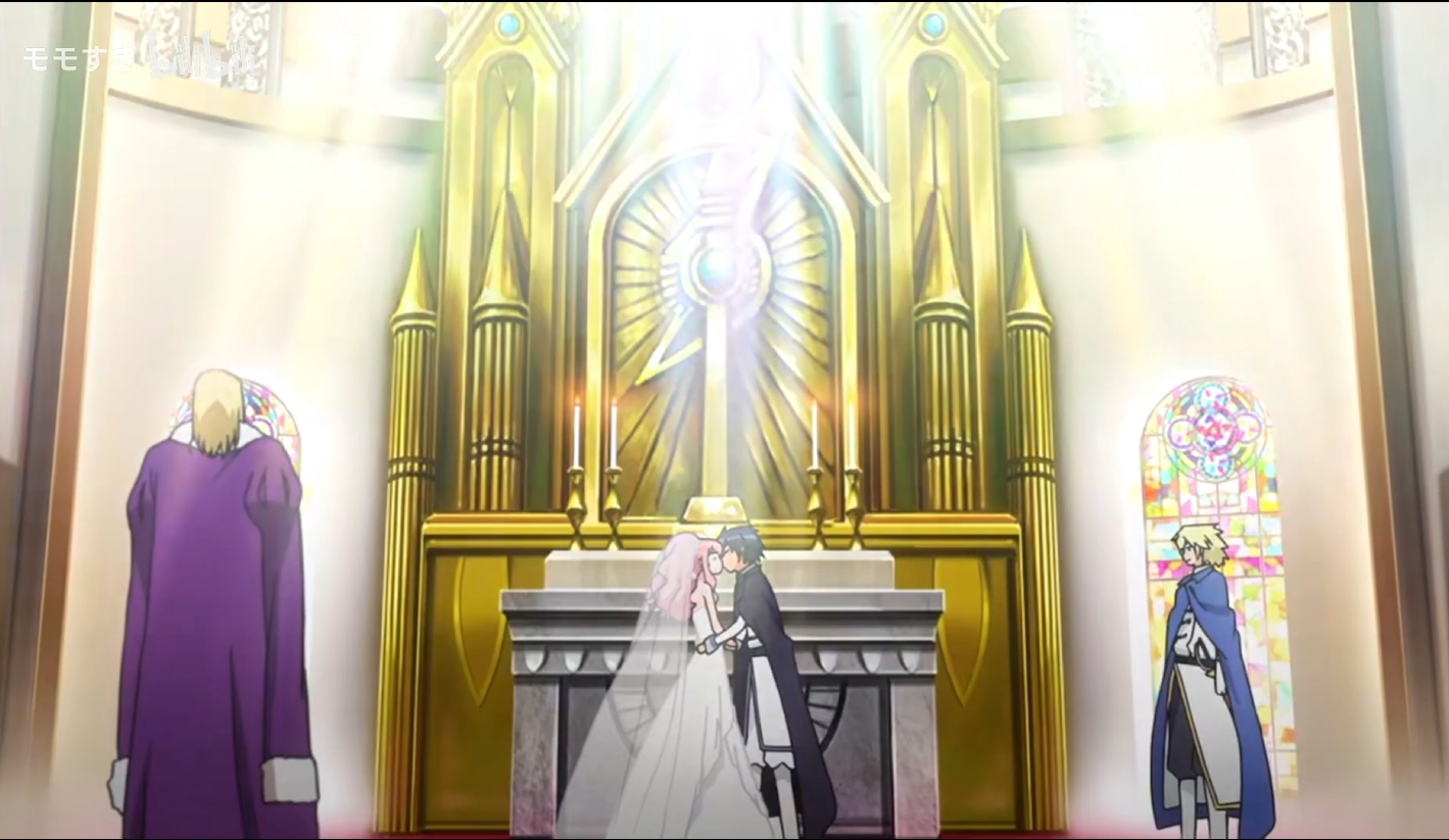 教堂里面坐满了新郎新娘的亲朋好友,有露易丝在魔法学校的同学,有以前和才人(宠物形态)纠缠不清的女仆们,大家都非常开心的拍手鼓掌,欢迎这对新人结成连理。