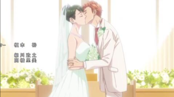 台上才人和露易丝倾诉爱意,然后两个人就相互献上结婚契约之吻。接着两个人就走到教堂外面,登上马车,露易丝手上还捧着玫瑰花束。马车带着俩人回到住所,婚礼结束。