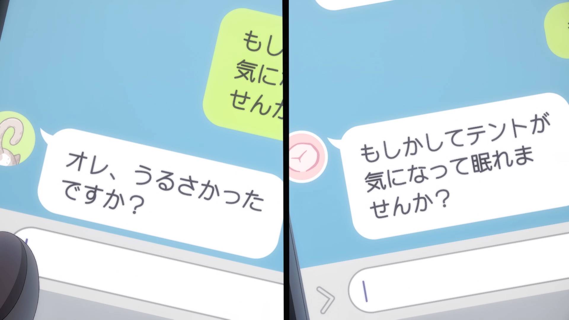 两人商量接下来的计划,大致是相处的模式(举手提问和回答),还有各种费用的划分,生活空间的分配(莉香会搭帐篷睡在里面)。