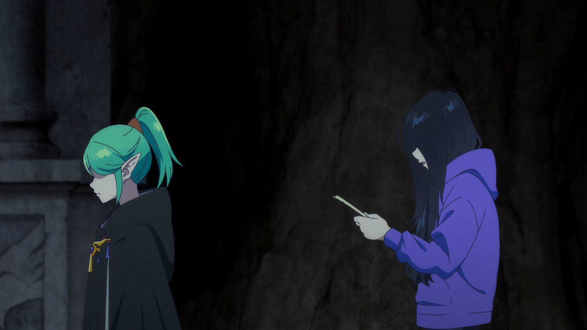 这种想法说得通,那怎么解决呢?本集最后的展开让人大跌眼镜,夏子画了她曾经参与过的偶像类作品里的角色,就把梅梅露感动了?这就是爱吗(不是)。这种解决办法明显是来搞笑的,属实在意料之外,能整活啊。也不是一点也说不通,梅梅露是作品里的角色,她肯定没见过这样精致画风的人(?),见过世界上还有这么“新鲜和鲜活”的事物,想必一定重新燃起对这个世界的期待了吧。要是说牵强的话,谁说就把谁开除二籍(?)