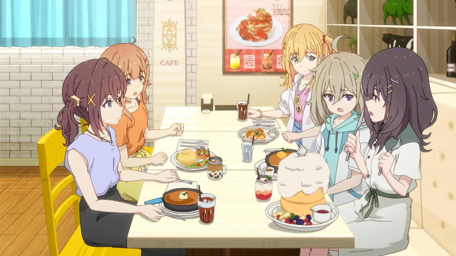 开幕雷击,几位在餐厅吃饭,真子一人点了一个浆果酱巨无霸烤饼。