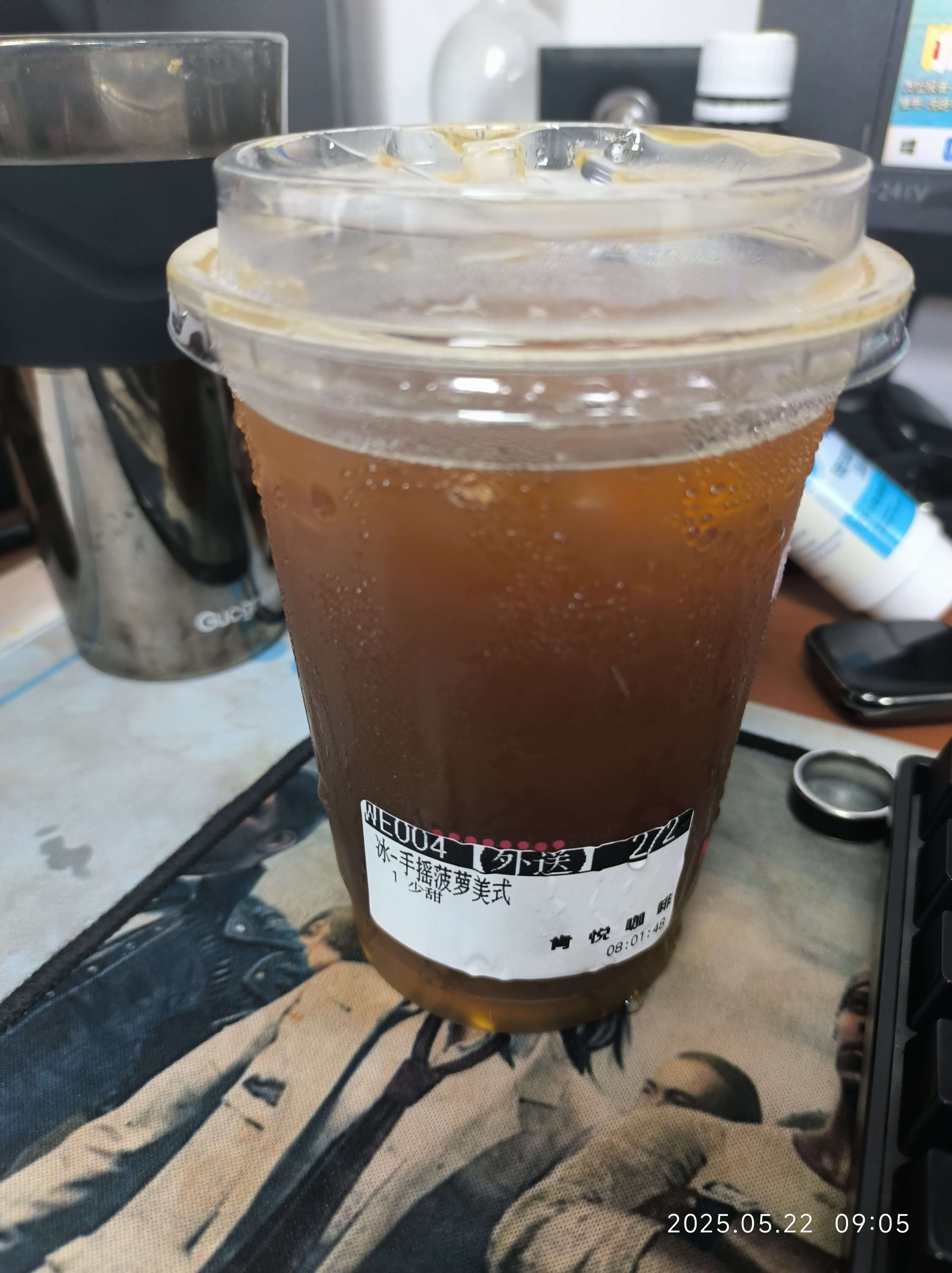 这个就是菠萝气泡美式。菠萝味是都乐那种。属于自然的范畴。没有咋感觉到香精味。并不是菠萝糖果那种。我送来已经搅拌匀了。喝着若隐若现的菠萝味