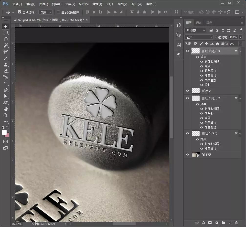 9.再复制一层logo,添加图层样式。
