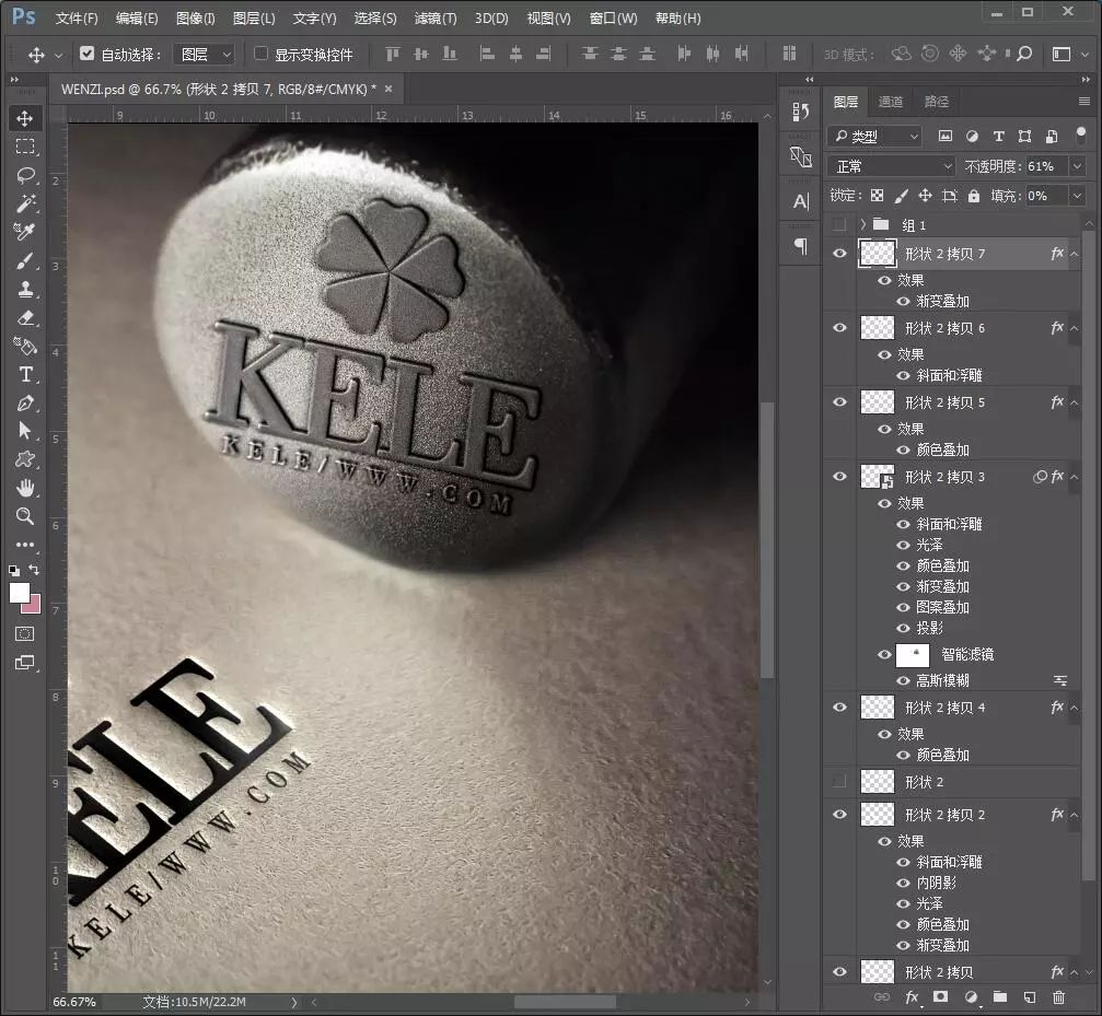 10.继续复制一层,同样添加图层样式。