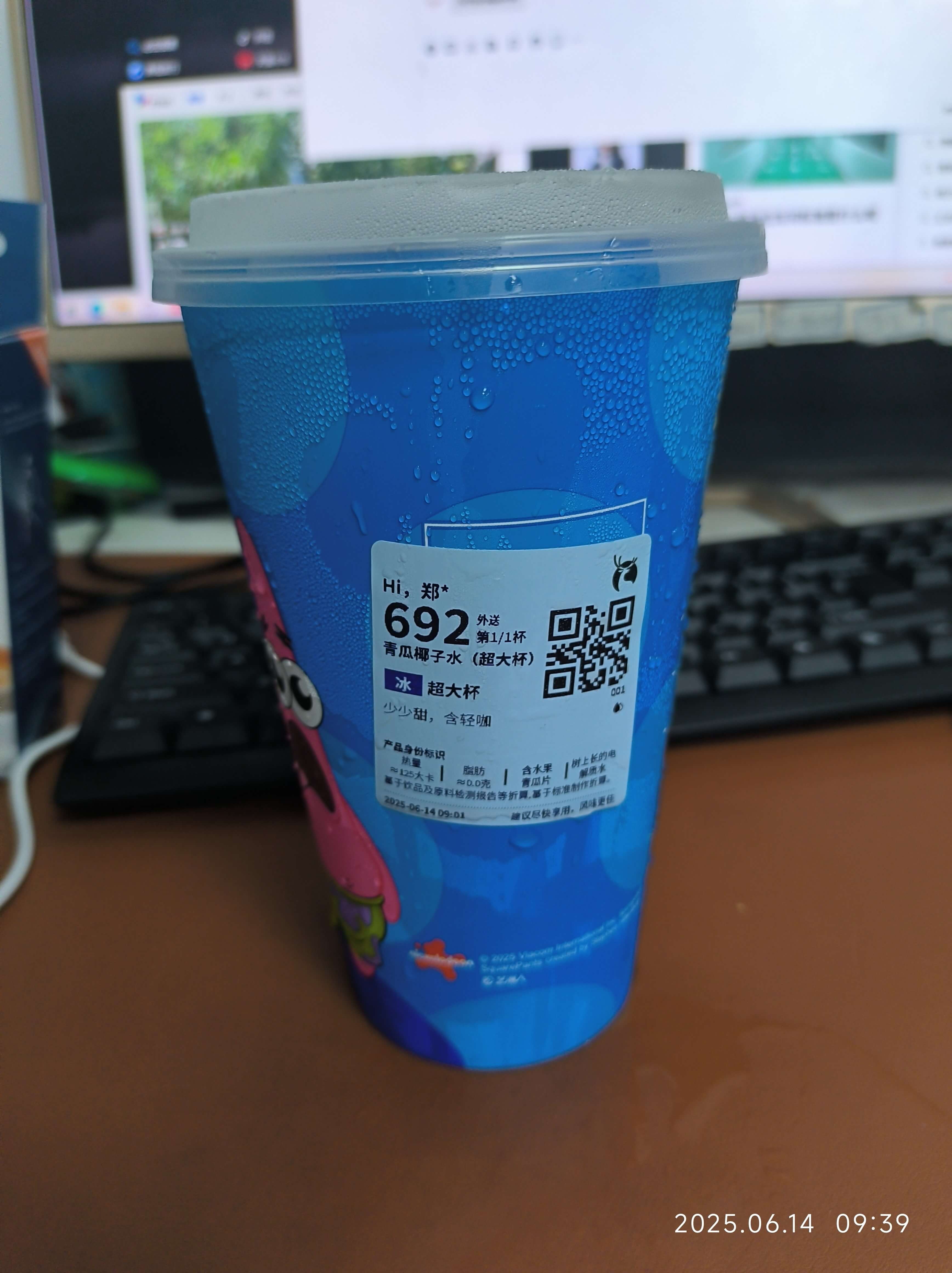 青瓜味很大,椰子水的味道也很正。拼起来是好喝的。而且里面是真有青瓜,一片一片的那种