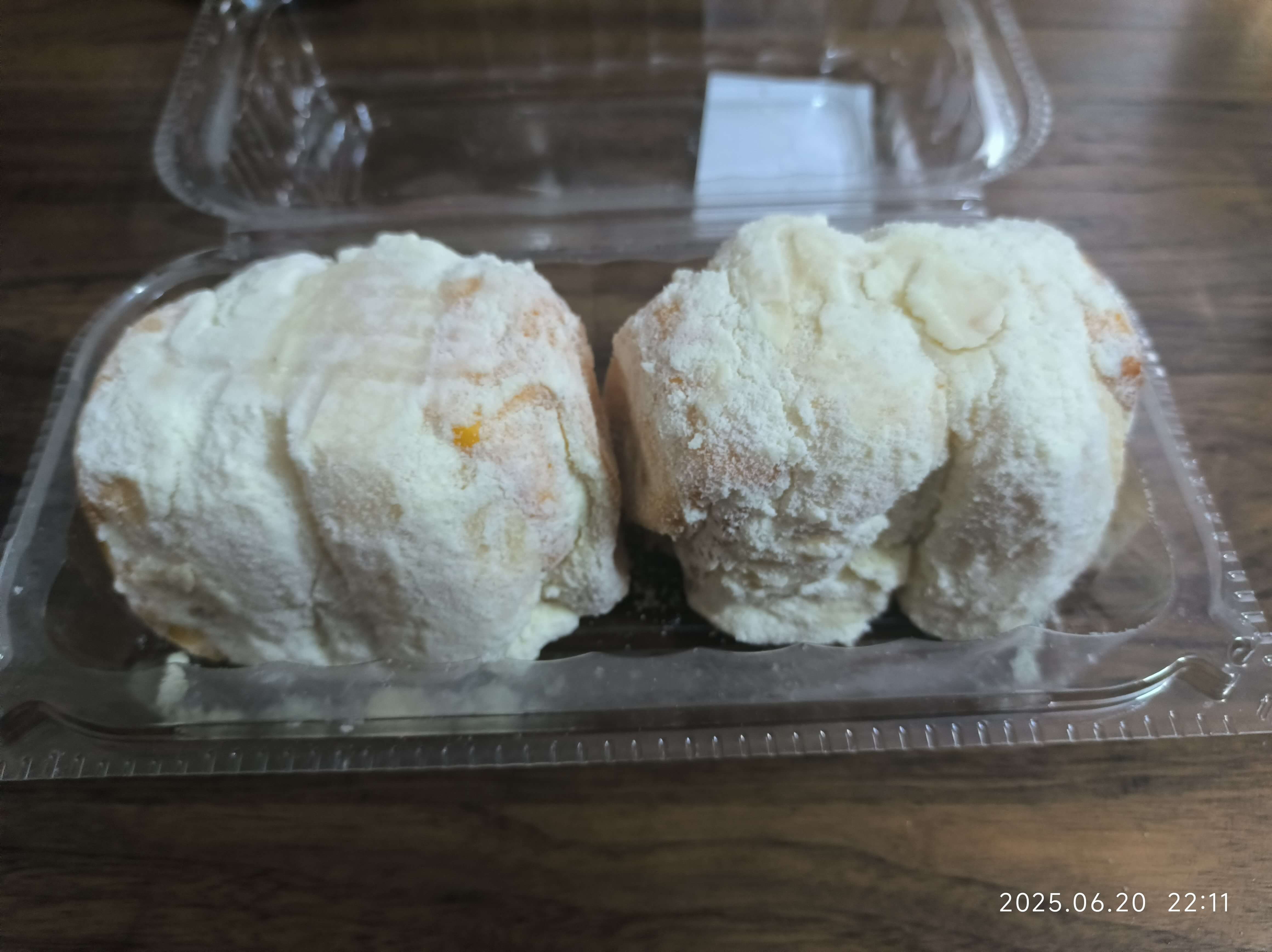 这个是沃尔玛的一个,奶粉面包。里面有橘子皮丁。不难吃。就是吃完糊一嘴。