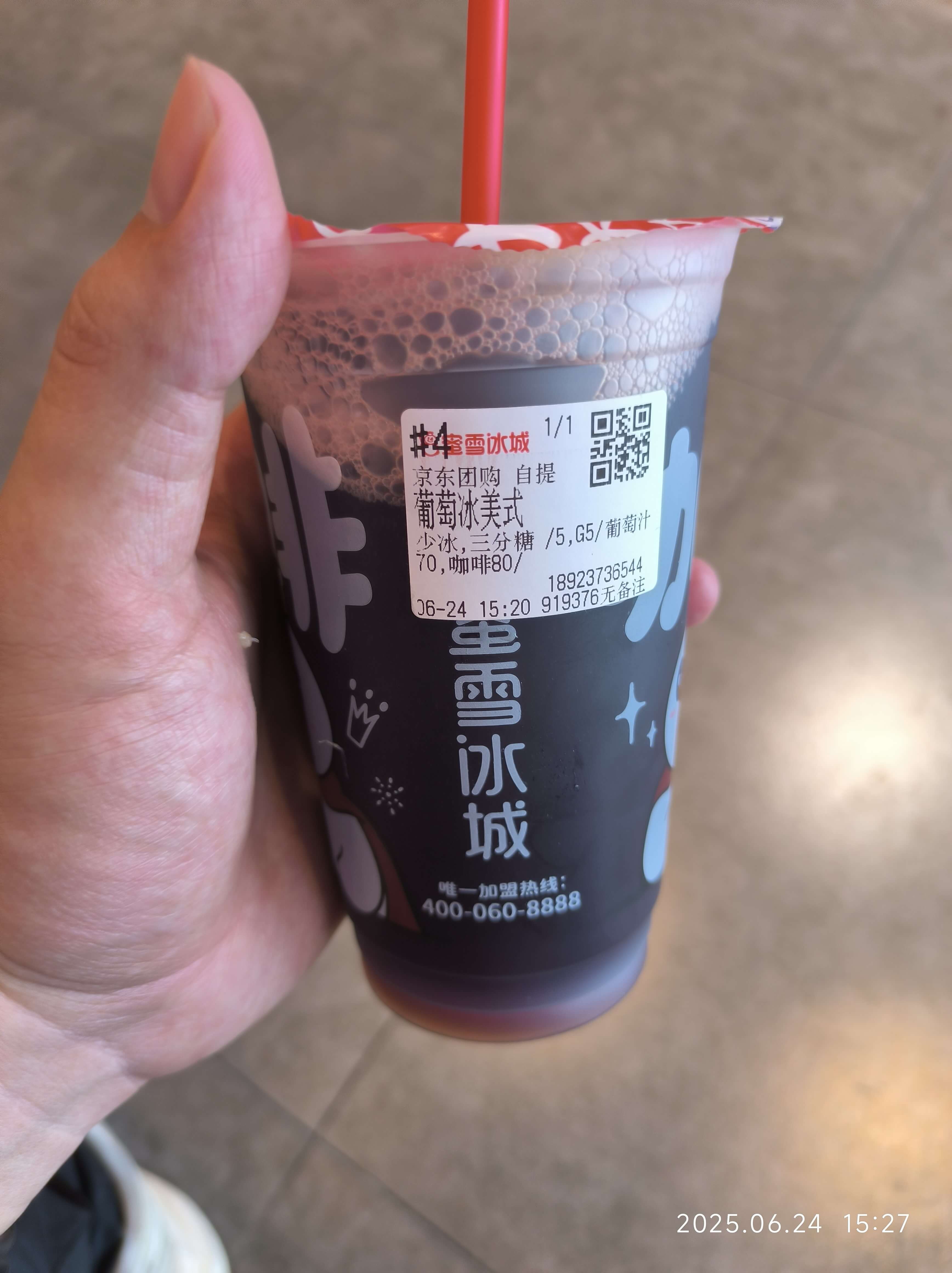 蜜雪这个葡萄冰美式有说法的。确实好喝,豆子先不说,葡萄味道能打肯悦,完爆瑞幸和库迪这种。