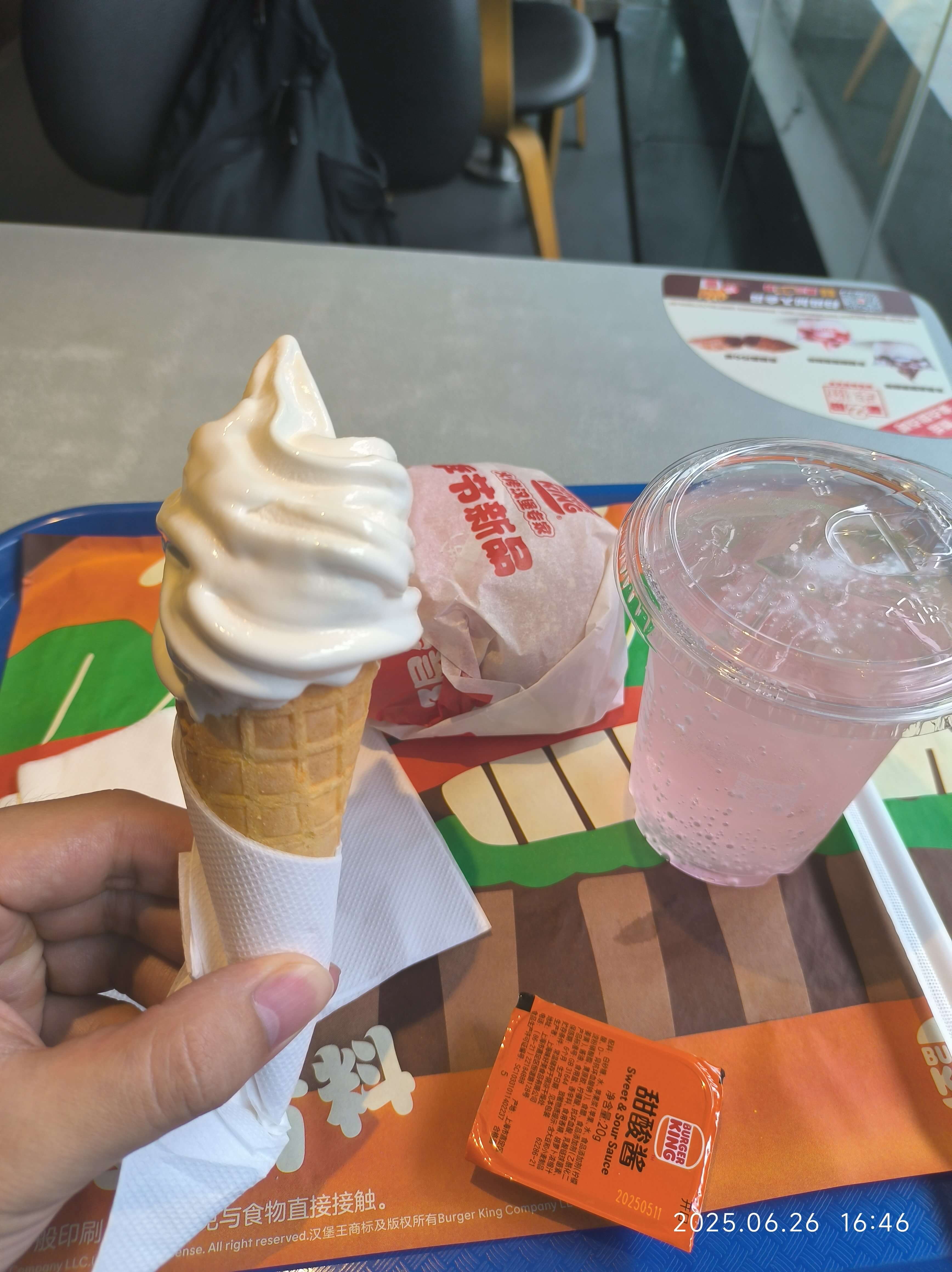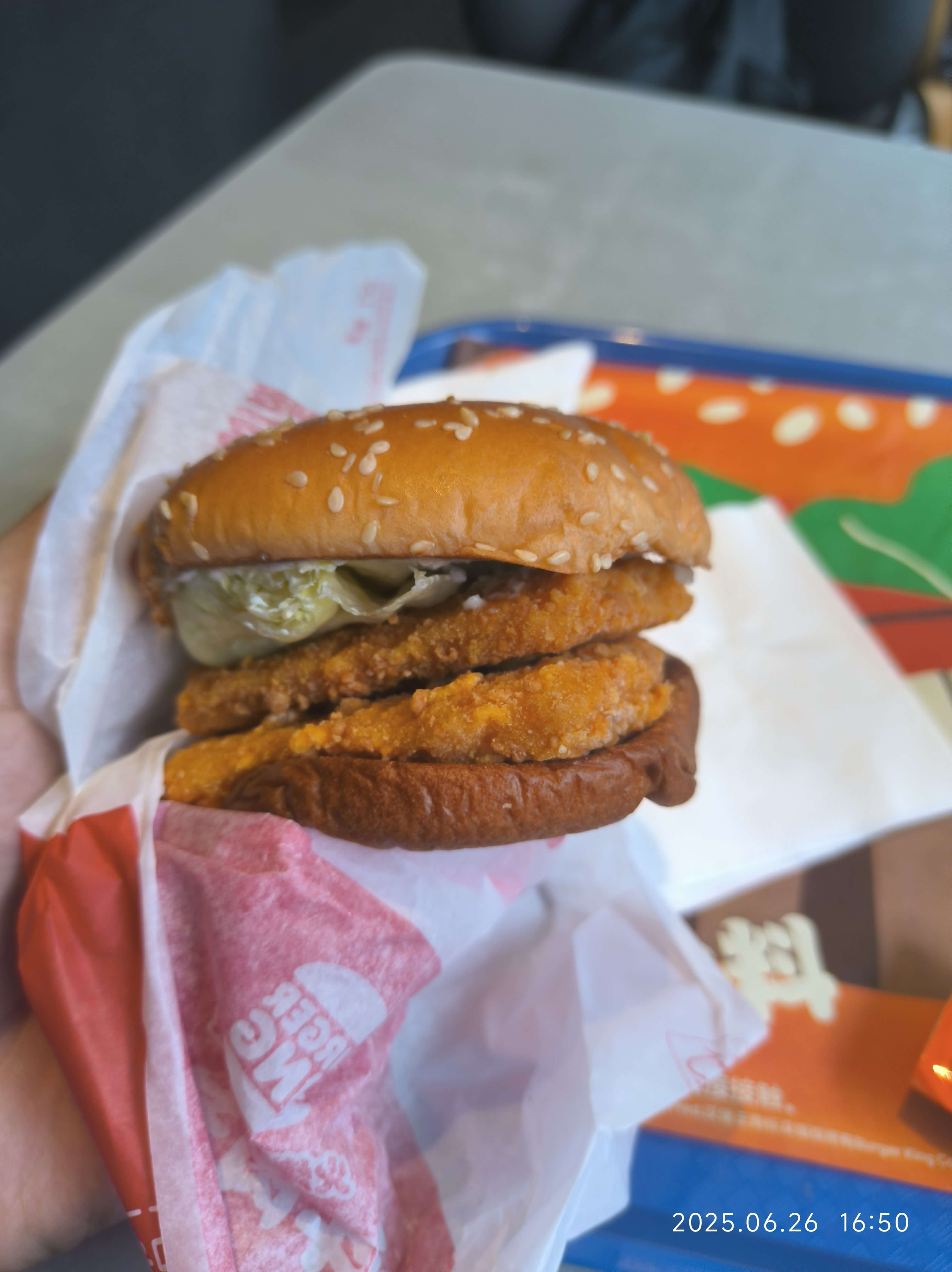 汉堡王这个确实顶饱,两个鸡排都很大。在这个价位里面。