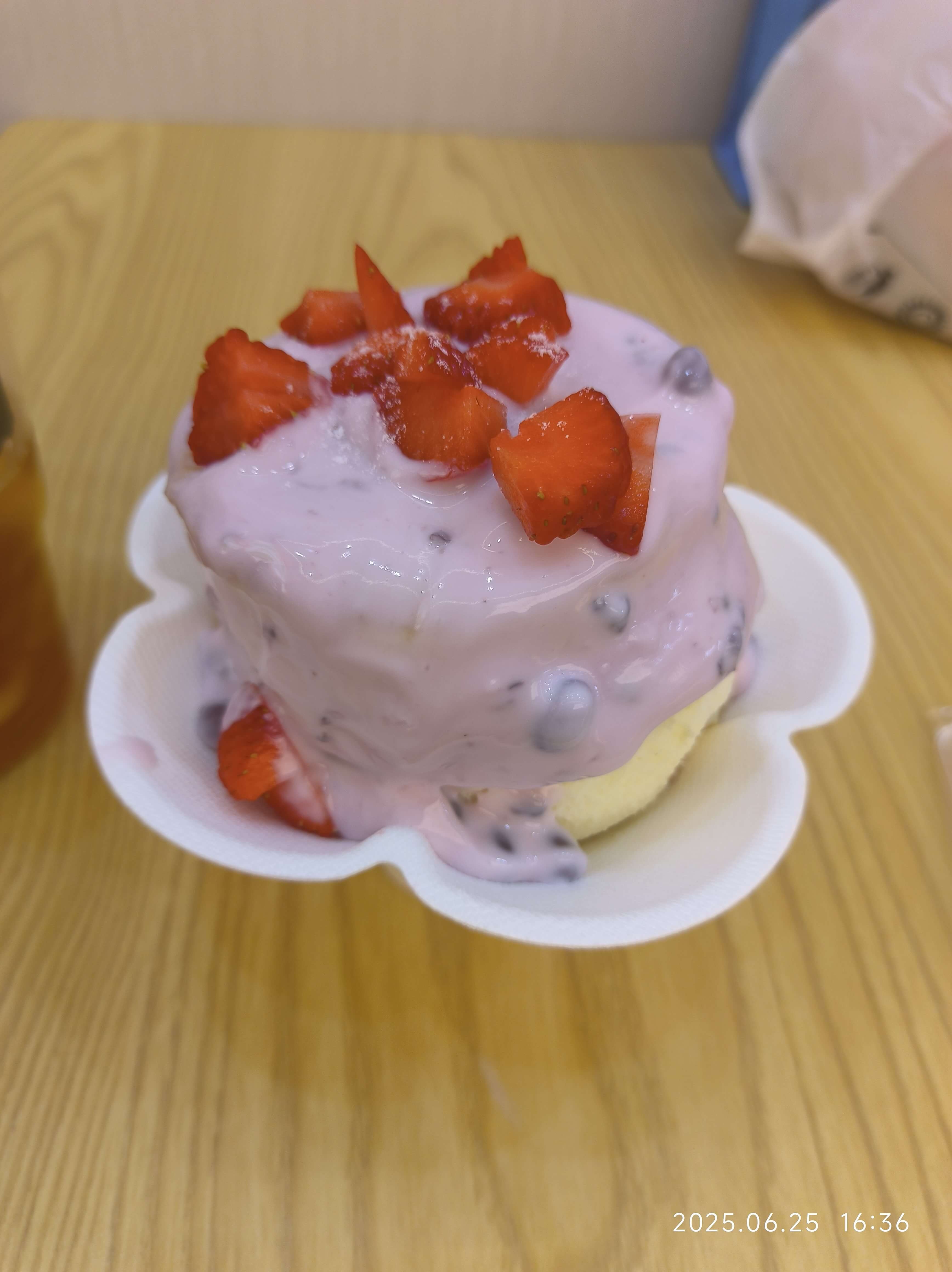 蓝莓酸奶舒芙蕾。蛋糕胚一般。酱调的还可以,属于是吃一次以后不会考虑的。价格比路边还贵。但是路边的舒芙蕾也别去吃。